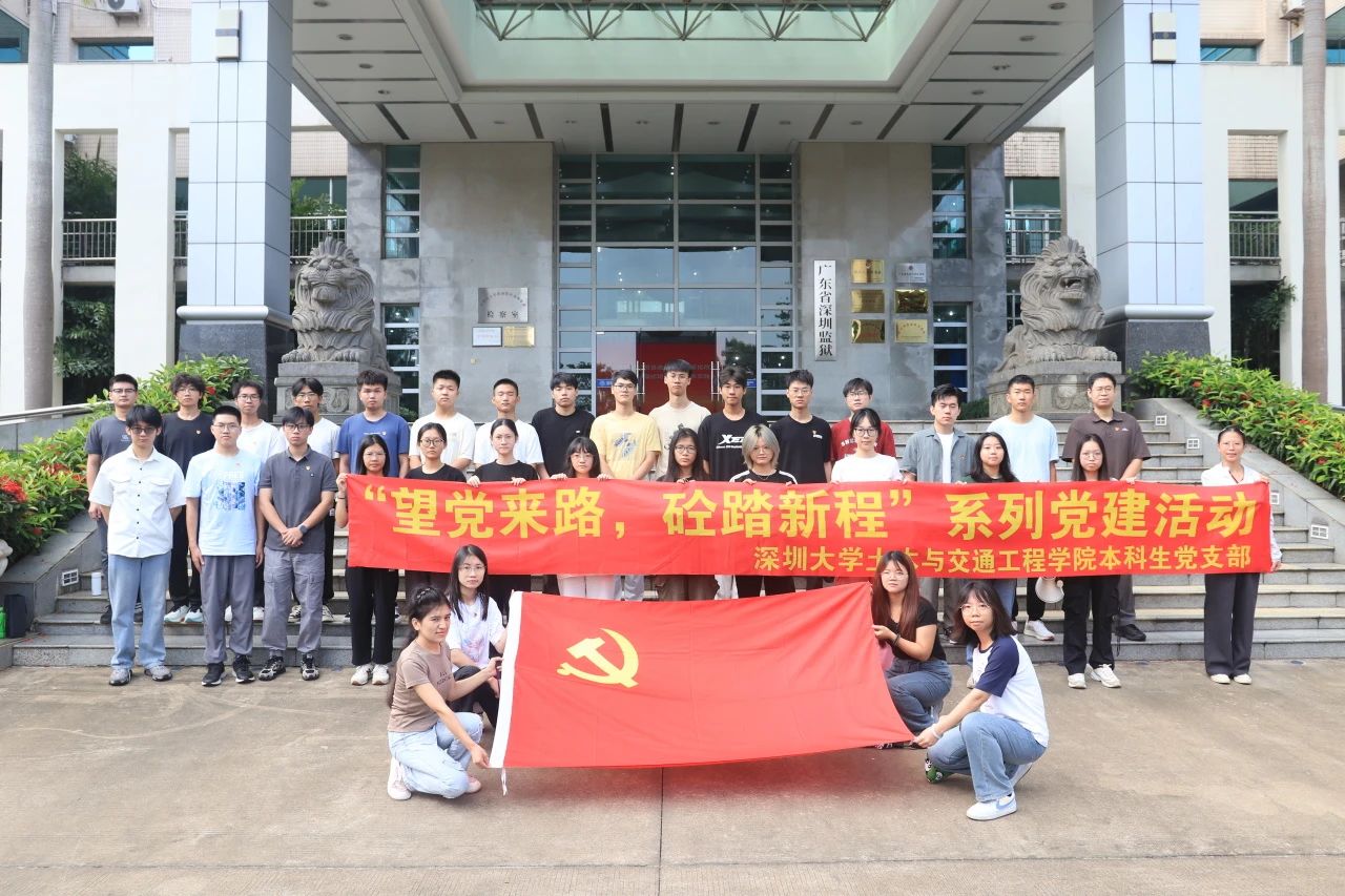 为深化党纪学习教育、强化党员自律意识,深圳大学土木与交通工程学院本科生党支部在党支部书记潘文龙同志的带领下,开展了“望党来路,同踏新程”系列党建活动,本期活动以“走进深圳监狱,强化党纪意识”党纪学习教育为主题,前往深圳监狱参观学习,接受警示教育。本次参观学习邀请了有意报考“直招军官”与参加义务兵的本研学生、入党积极分子与发展对象以及部分研究生党员。通过实地参观和现场教学,同学们深刻领悟党纪国法的严肃性和重要性。