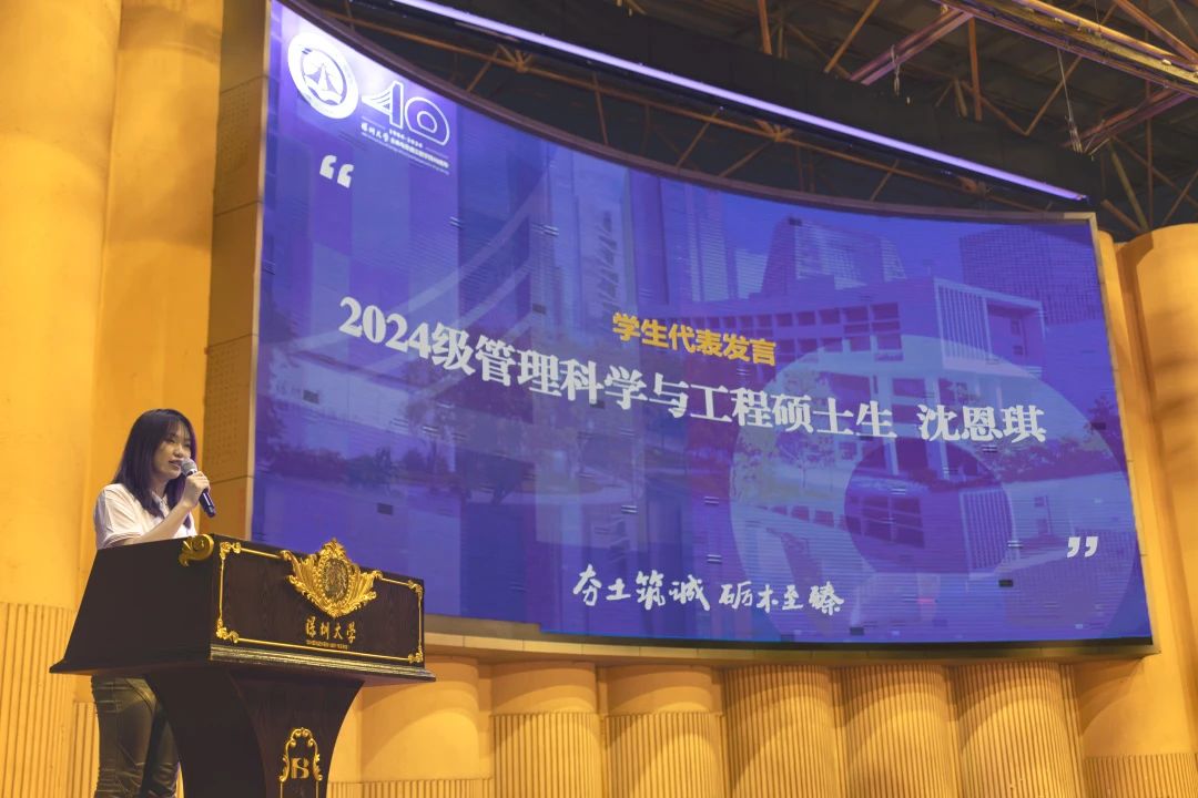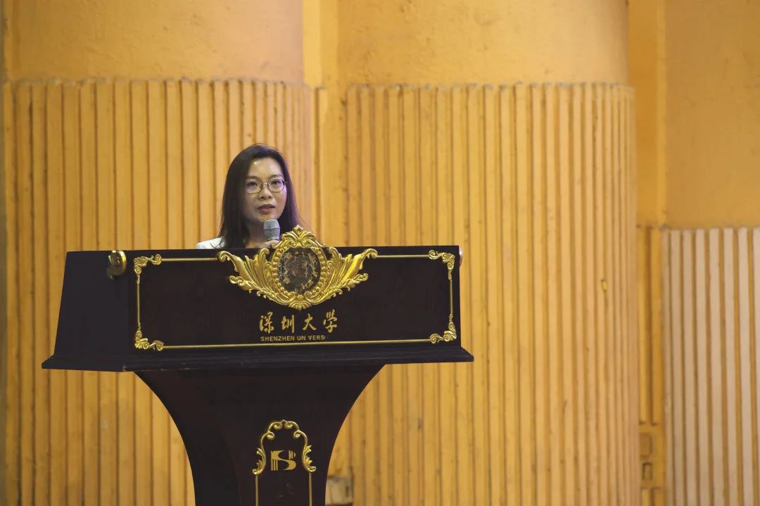 学生代表沈恩琪同学发言,她以一名“深大人”的自豪与期待,发表了激情洋溢的演讲。沈恩琪同学提到,新征程需归零心态,勇敢面对未来;新征程需不畏困难,直面科研挫折;新征程需脚踏实地,以微小行动累积伟大成就。