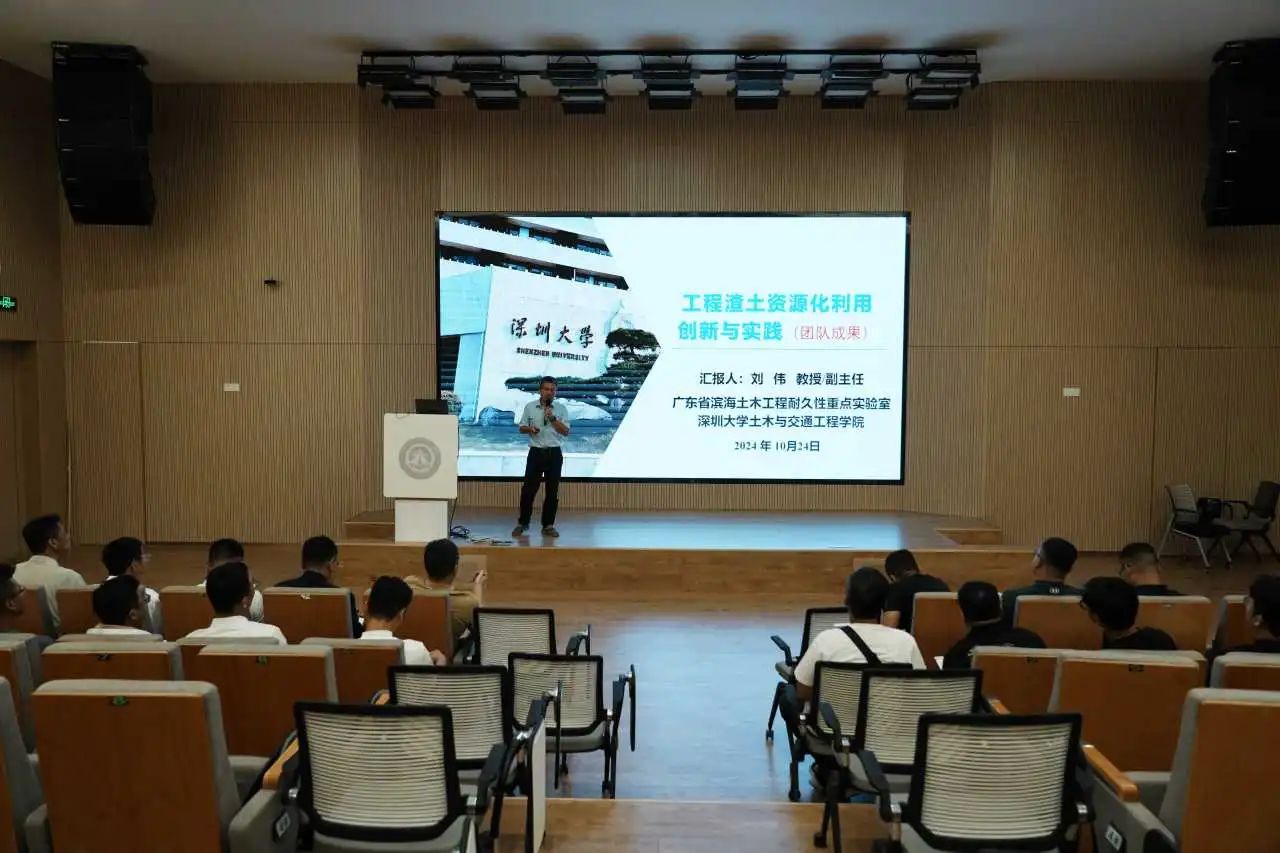 刘伟教授作了《工程渣土资源化利用创新与实践》主题培训,系统介绍了广东省滨海土木工程耐久性重点实验室概况、团队整体情况、研究方向与成果,并着重讲解了工程渣土资源化利用关键技术。