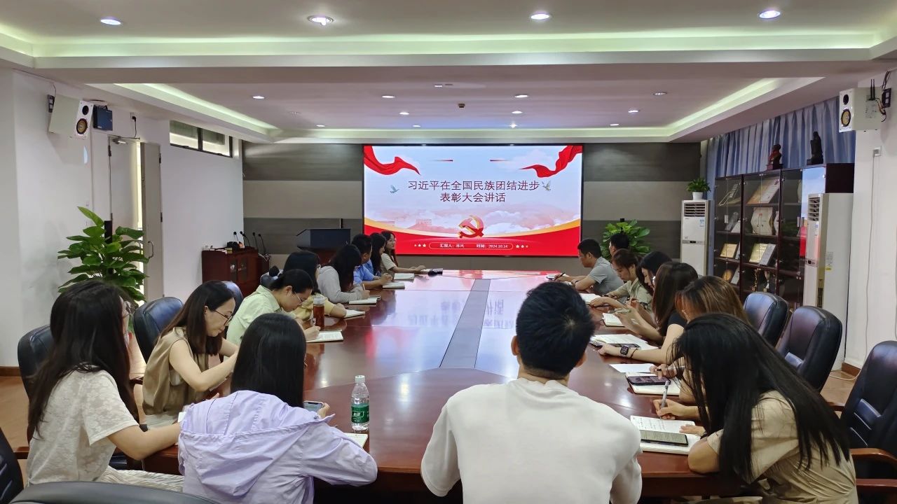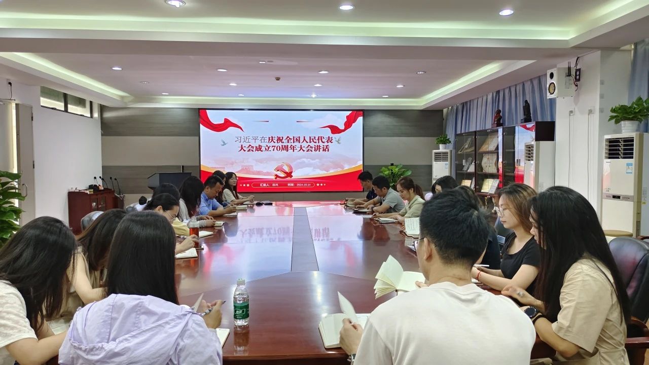 首先,由支部党员林凤领学习近平总书记在庆祝全国人民代表大会成立70周年大会上的讲话、在庆祝中国人民政治协商会议成立75周年大会上的讲话以及在全国民族团结进步表彰大会上的讲话。