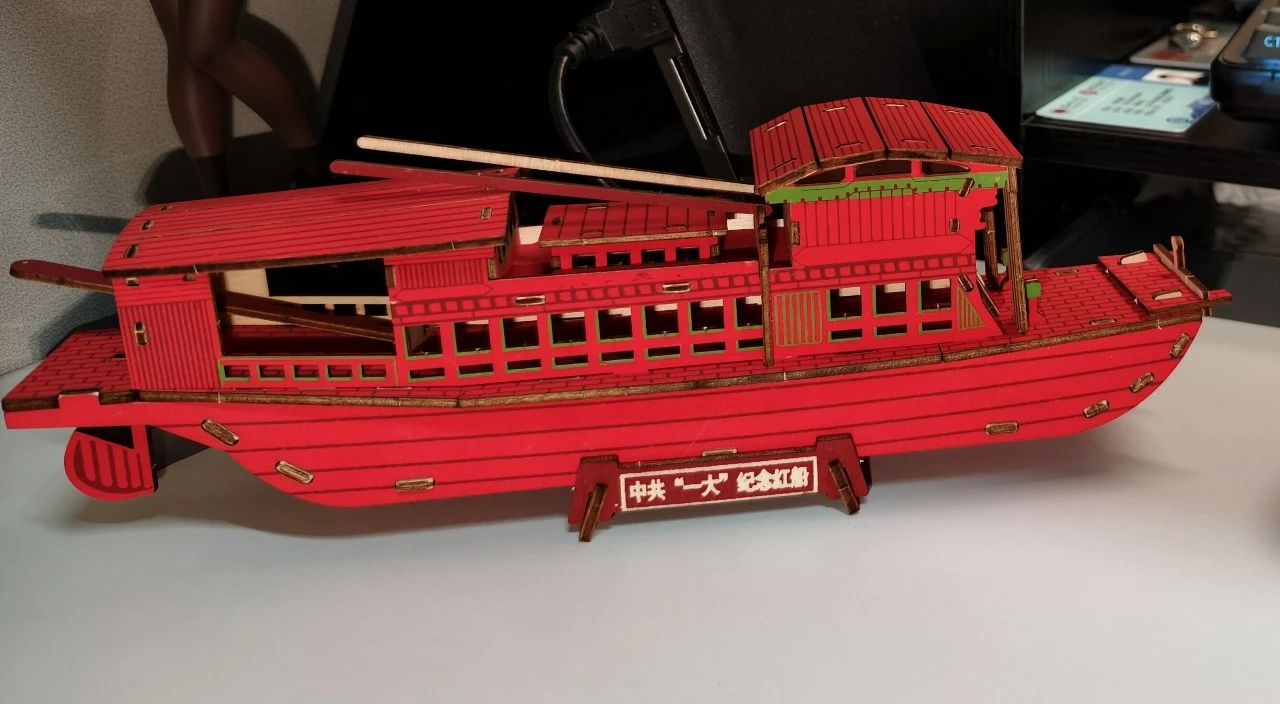 (发言同学拼装好的红船积木)