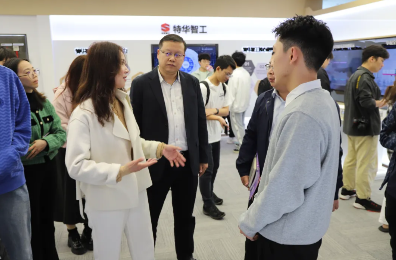 随后,学院一行参观了天健云途1栋21楼深圳建设集团特华智工展厅。展厅内,智能建造机器人、全屋智能、数字孪生平台等创新成果令同学们驻足体验。企业技术团队现场演示了全屋智能的生活场景,生动呈现了科技赋能建筑行业的实践场景。