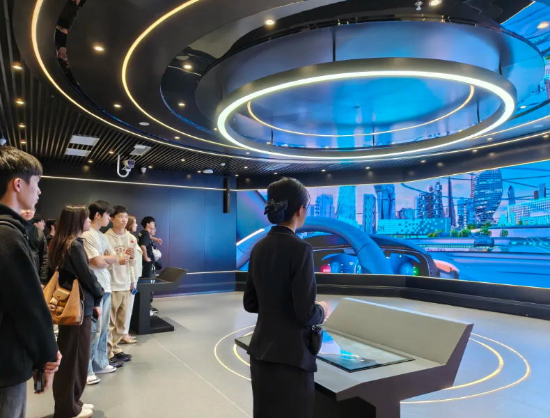 活动最后一站,学院一行走进大运AI小镇“亲清”空间。“亲清”空间以“亲”“清”为核心理念,分别规划“纪、联、惠、政、润”+"数、阅、创、心”九大特色空间,围绕AI智能主题开设人机交互体验场景,旨在提升参观者的廉洁意识,筑牢思想防线。师生一行参观了大运Al小镇“亲清”空间廉洁文化阵地,观看了相关廉洁教育视频,进一步深化了廉洁教育。随后,深度了解了“咖啡机器人”“金牌店小二”等各类机器人,以及“360度全息影像球”“互动滑轨屏”“颜值推书”等多种智慧设施,沉浸式感受到了科技赋能生活的力量。