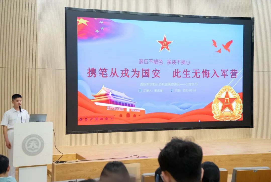 青春逢盛世,奋斗正当时!为深入贯彻落实国家征兵政策,进一步加强大学生国防教育,推动高素质人才投身国防建设,我院于3月25日成功举办直招军官和义务兵宣讲会,本次宣讲会由本科生党支部承办,旨在帮助同学们深入了解直招军官与义务兵入伍政策,拓宽个人发展道路。