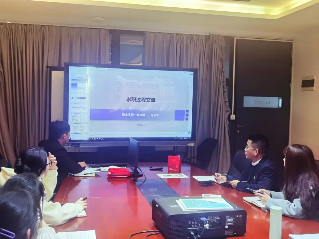 除了学术研究的支持,支部还高度重视研究生的职业发展。2025年1月13日,在“求职实战”分享会上,何俊宏同志以自身求职经历为例,详细介绍了从自我评估到成功签约的完整流程,为同学们提供了宝贵的实战经验。他强调了无领导小组讨论、结构化面试和半结构化面试的重要性,并分享了应对这些环节的实用技巧,帮助同学们在求职过程中展现最佳状态。