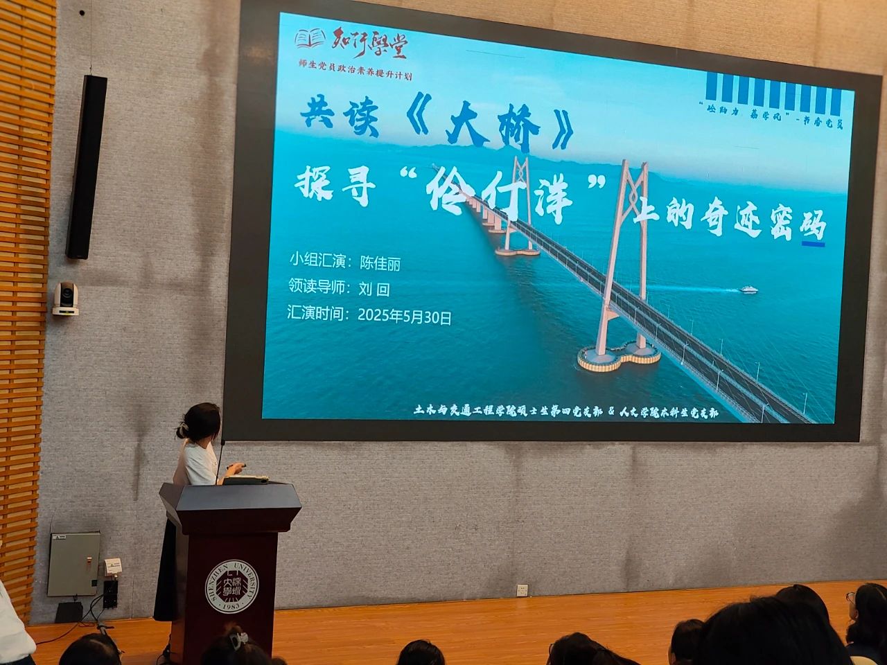 为深入学习贯彻党的二十大及历次全会精神,落实习近平总书记关于思政课和教育工作的重要讲话精神,强化“立德树人”根本任务,土木与交通工程学院硕士生第四党支部与人文学院本科生党支部联合开展“砼助力•荔学风”之“书香党员”活动。活动以《大桥》一书为载体,组建读书小组,通过“读、思、悟、行”四维联动,将理论学习与实践探索深度融合,全面提升师生党员政治素养,探索党建育人新路径。