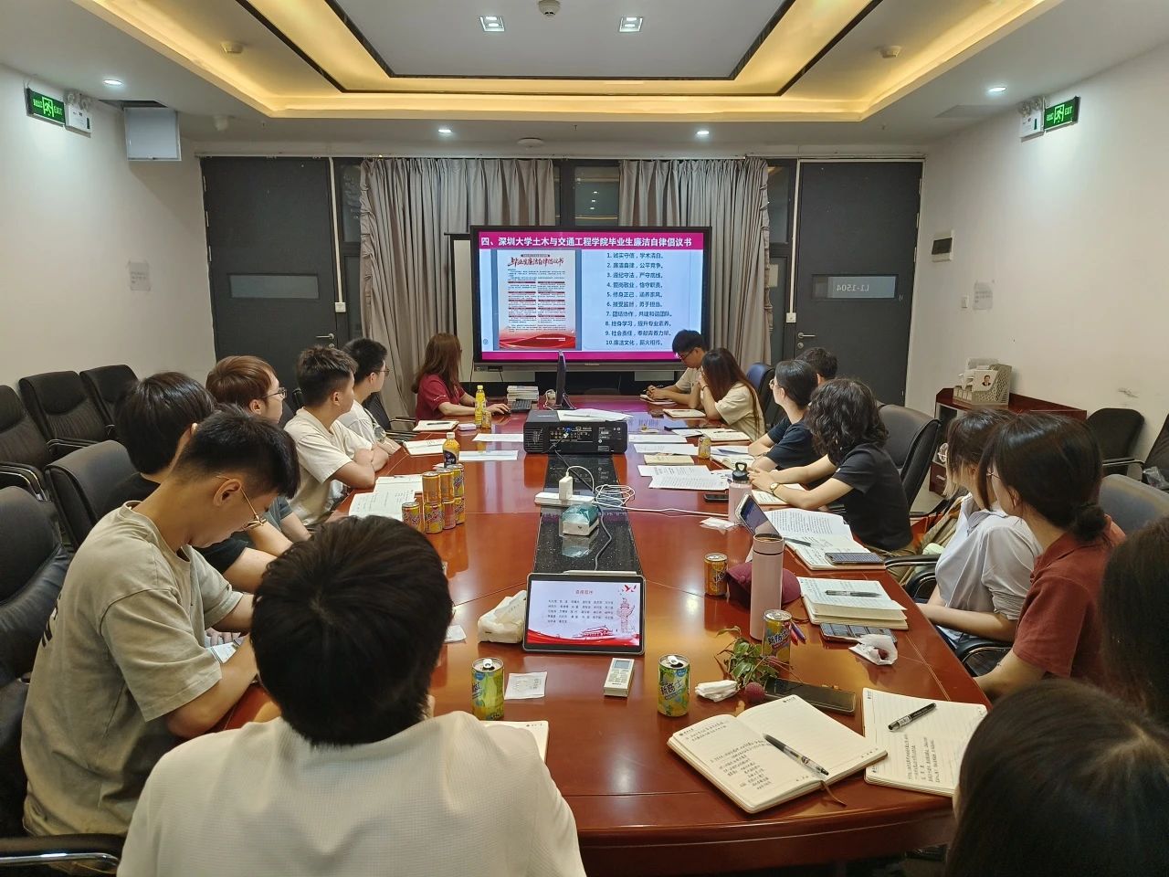 陈碧霞副书记与毕业生党员围绕“青年廉洁从业第一步”进行交流勉励,现场共读《深圳大学土木与交通工程学院毕业生廉洁自律倡议书》,号召青年党员在走上社会之前,把纪律规矩刻在心上、落到行动中。