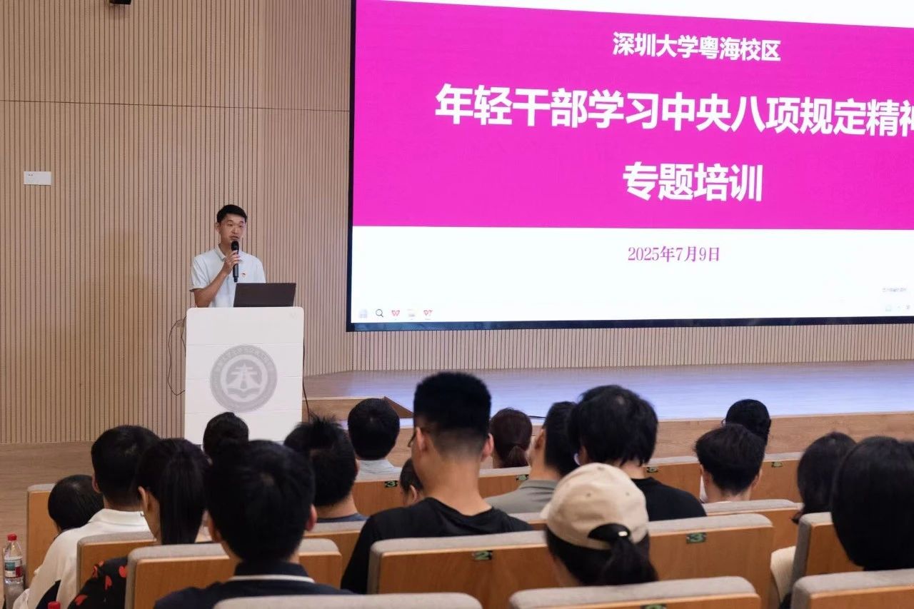为深入贯彻中央八项规定精神,提升年轻干部的政治素养和作风建设能力,7月9日,深圳大学粤海校区年轻干部学习中央八项规定精神专题培训在致工楼A431报告厅举办。本次培训由党委组织统战部指导,土木与交通工程学院党委、南特金融科技学院党委联合主办,粤海校区18个学院党委及5个职能部门党委共同协办参与,近200名年轻干部参加培训。教育学部党委书记李臣主持培训。