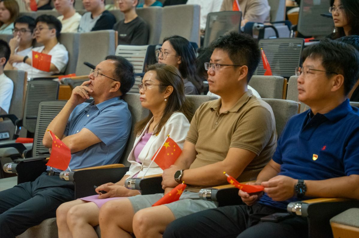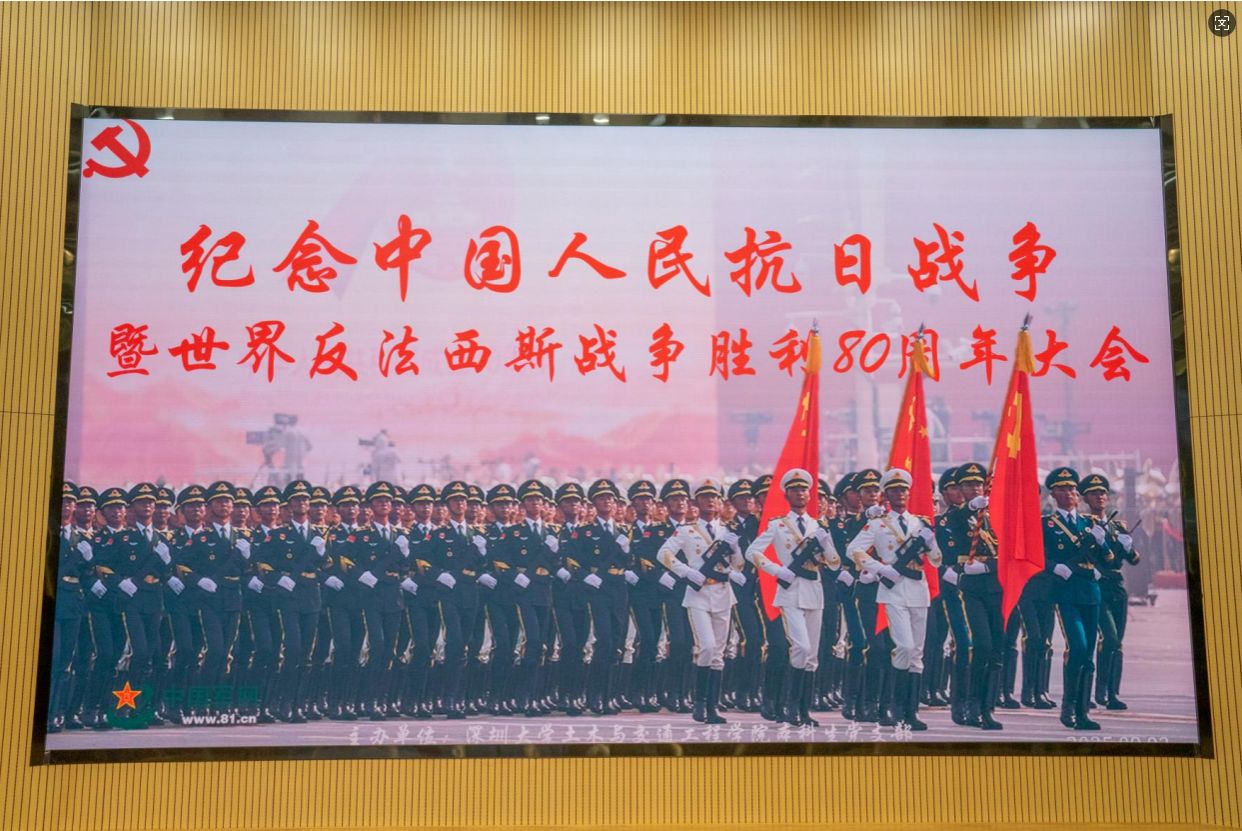 2025年9月3日上午,土木与交通工程学院组织师生,在致工楼A431报告厅集中观看中国人民抗日战争胜利暨世界反法西斯战争胜利80周年纪念大会与阅兵仪式。本次活动由本科生党支部组织。参加教师包括学院党委副书记陈碧霞、副院长杨磊、特聘教授陈忠平、专业教师代表及教辅教工代表等,参加学生中,包括学生党员,发展对象、入党积极分子、有意参军入伍的学生等,共计170余人。全体师生跟随直播镜头,共同回顾烽火岁月,缅怀革命先烈,铭记抗战历史,传承民族精神,感受强国强军的时代脉动,接受了一次深刻的爱国主义教育和精神洗礼。