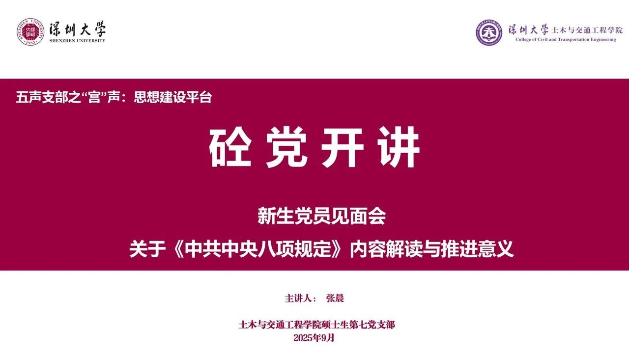 党支部书记张晨首先代表支部向新加入的党员同志表示了热烈的欢迎。支部书记在会上指出,新生党员是党组织的新鲜血液,是未来发展的希望所在。大家从五湖四海汇聚于深圳大学,不仅带来了新的活力,更肩负着延续党的优良传统、发挥先锋模范作用的重任。支部书记希望新生党员能尽快融入硕士生第七党支部这个大家庭,尽快适应新的学习科研环境,同时时刻牢记党员身份,在新的起点上不忘初心、砥砺前行,将个人成长融入党和学校的事业发展之中。