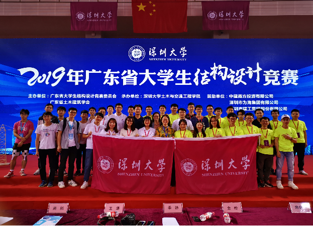 5月31日—6月2日,2019年广东省大学生结构设计竞赛暨第十三届全国大学生结构设计竞赛广东省分区赛于深圳大学后海校区元平体育馆顺利举行。本次竞赛由全国大学生结构设计竞赛委员会、广东省大学生结构设计竞赛委员会、广东省土木建筑学会联合主办,深圳大学土木与交通工程学院承办,共有来自广东省内18所高校38支队伍114名学生参赛。经过5月31日18:00至6月1日22:00近16个小时紧张的模型制作过程后,6月2日上午8:30,结构设计竞赛开幕式在元平体育馆顺利举行。竞赛组委会最终评出特等奖1项,一等奖8项、二等奖12项、三等奖17项,最佳制作奖1项。我校3支队伍在比赛中分别荣获一、二、三等奖。