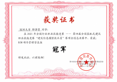 我校的三支参赛队伍经过不懈努力,在广东省建筑信息模型技术员选拔赛的30余支队伍中,取得个人一等奖1项、三等奖5项以及团队第三名和优胜奖2项的优异成绩;最终钟泽贤同学代表深圳大学参加BIM项目管理方向全国总决赛,并以第一名的成绩荣获全国冠军!