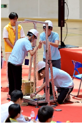 此次赛题为高耸塔式模型结构制作,以竹皮作为材料。整个比赛过程包括12个小时的模型制作以及一整天的模型加载,经过三天的激烈角逐,最终我校作品成功完成了模型制作并承受了全部荷载与水平震动干扰作用,完美地完成了比赛。