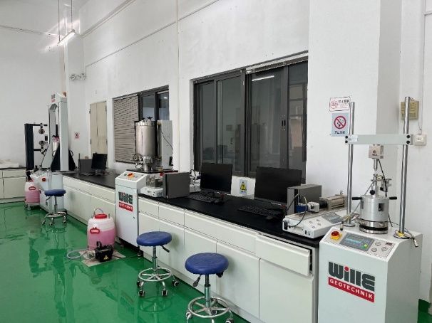 岩土及地下工程科研实验室位于深圳大学沧海校区致工楼,建筑总面积约200平方米,主要服务于硕士、博士研究生的相关研究工作。该实验室主要面向岩土工程领域的重大科研项目提供材料力学性能精准测试,核心特色是聚焦极端环境和复杂应力条件,其中,冻融单轴压缩仪、动态环境三轴仪和高压环境三轴仪主要用于极端环境研究,可实现岩土材料的温度场-渗流场-应力场耦合分析;真三轴加载装置、压扭耦合装置和动态模量测试装置(共振柱)主要用于复杂应力研究,对岩土材料的应力状态和路径依赖性进行精准测试分析。针对目前极端气候频发、超大城市地下空间开发密度高的现状,土体材料工程性质的精准把握尤为重要。目前,实验室相关研究已服务于深圳前海深隧道工程、川藏铁路沿线滑坡治理、国家自然科学基金重大项目超大城市韧性研究等重点项目。