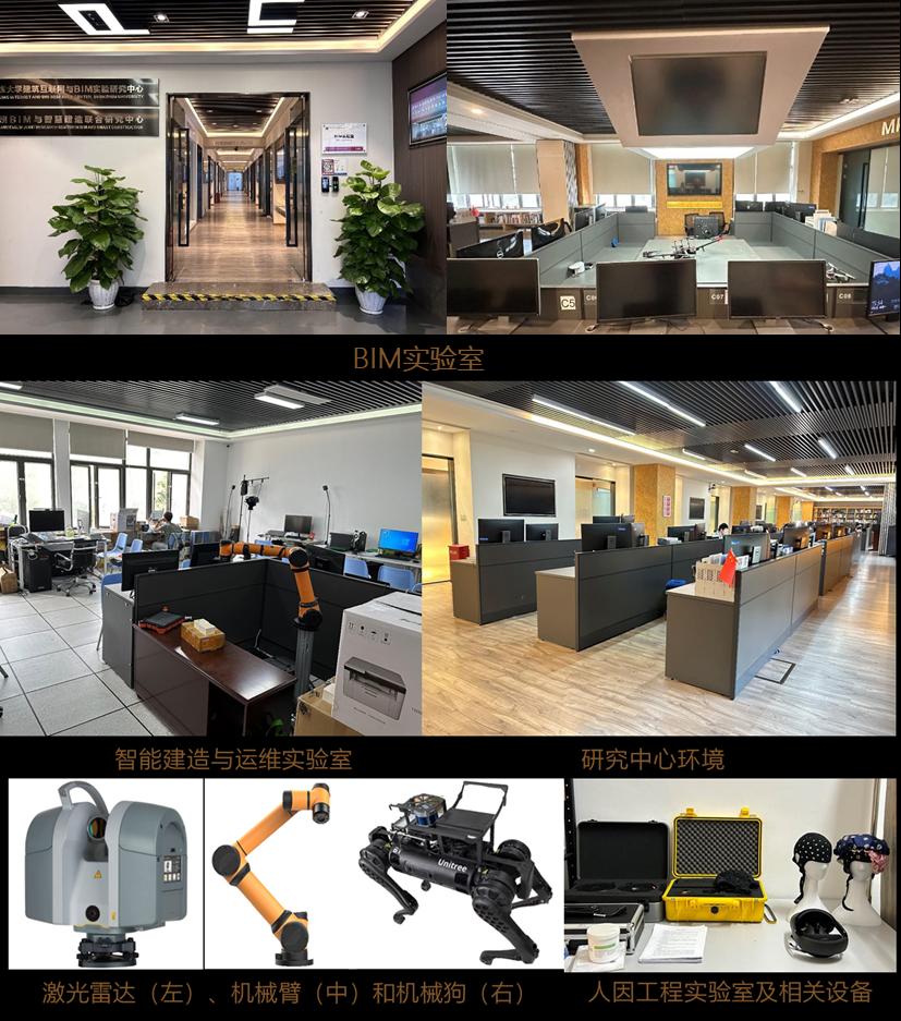 BIM实验室位于深圳大学沧海校区致工楼,建筑总面积约800平方米,配备了云计算服务器群、三维激光扫描仪、无人机测绘设备、沉浸式VR系统,以及众多图形工作站和BIM相关软件。此外,智能建造与运维科普实验室配备激光雷达、机械臂、机械狗及人因工程实验室相关设备。