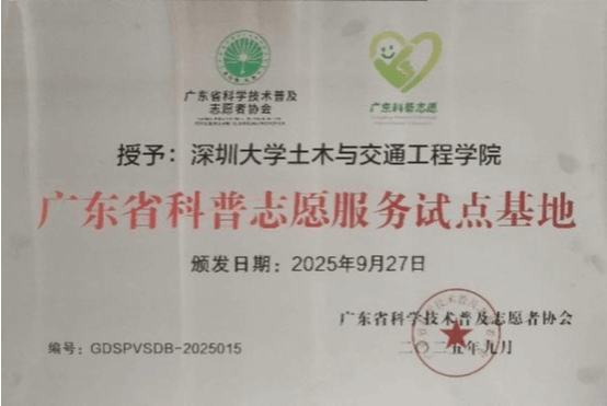 深圳大学土木与交通工程学院科普教育基地依托深地工程智能建造与健康运维全国重点实验室、极端环境绿色长寿道路工程全国重点实验室、极端环境岩土和隧道工程智能建养全国重点实验室等国家级研究平台,广东省深地科学与地热能开发利用重点实验室、广东省土木工程教学实验示范中心等部省级教学科研平台建设,构建了覆盖深地深海工程、滨海数智土木工程、极端环境建造、地热能开发等多个领域的科普场所。此外,与荷兰代尔夫特大学共建的中荷土木工程材料国际联合实验室、与国家建筑信息模型产业技术创新战略联盟(中国BIM发展联盟)和澳大利亚斯威本科技大学(Swinburne University of Technology,Australia)共建的中澳BIM与智慧建造联合研究中心、与新西兰怀卡托大学共建可持续发展联合实验室等国际合作平台,进一步拓宽了科普活动的国际化视野和影响力。近年来,科普基地建设取得阶段性进展,已成功获批包括中国土木工程科普教育基地、广东省科普教育基地、广东省土木建筑科普教育基地、广东省科普志愿服务试点基地以及深圳大学科普教育基地等国家、省市校多级科普教育基地。同时,基地建设单位亦被评为广东省科学技术普及志愿者协会副会长单位,形成了体系完整、层次分明、覆盖广泛的科普教育体系。