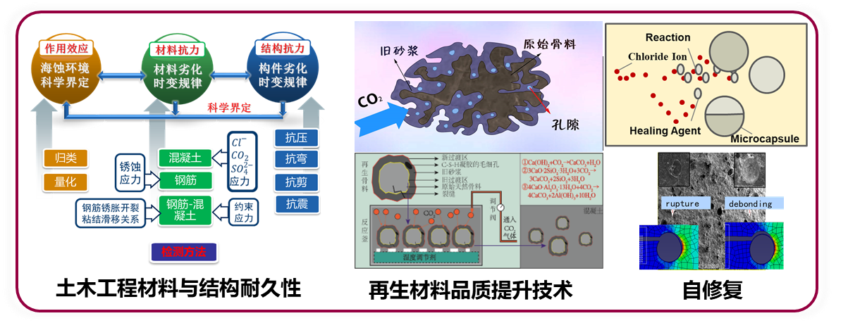 实验室围绕滨海土木工程结构耐久性与可持续发展这一核心问题进行全面而有深度的探讨。在两任学术委员会主任陈肇元院士及周福霖院士的指导下,以邢锋教授为总学术带头人和韩宁旭教授为总学术顾问与总学术负责,通过国家杰出青年科学基金、国家973计划、重大国际科技合作、国家基金重点项目和国家与省联合基金重点项目等22项国家级重大项目及90项国家自然科学基金和65项省部市级研究项目的强力助推,形成和扩展了以土木工程使用寿命(再)设计理论框架为基础的总体研究策略和技术路线;同时,以资源综合利用和可持续新型材料为推动点,不断完善滨海混凝土基础设施可靠度分析、劣化识别与控制的基本方法,在滨海混凝土结构性能劣化机理、控制理论及其工程应用方面取得了系列创新性的研究成果,实验室主题研究成果发表论文1400篇(SCI检索1110篇),授权发明专利169项(国际专利17项),获2014、2017年度国家技术发明奖二等奖2项与省部级科技奖励一等/二等奖共9项。