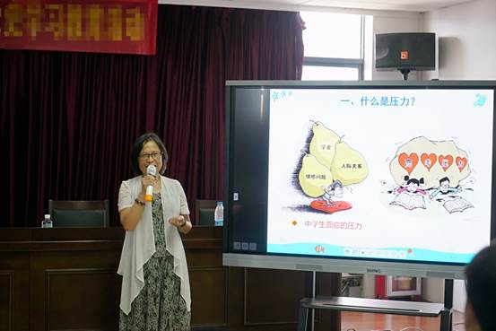 陈老师通过一个“压力来自于哪里”的问题,打开了大家的话匣子,大家纷纷发言述说着自己的压力。借此,陈老师给学生和老师们细细的讲述了压力的来源和种类,并针对同学和老师们的压力状况,给出了“八大”减压策略,包括:不放任压力情绪的发展;暂时避开压力源;由负向思维转向正向思维;好好睡一觉;自我暗示法;合理宣泄法;目标调整法;社会求助法等。除了理论,更有实操,陈老师现场传授了大家几套心理保健操用于减压放松。在陈老师的带领下,班主任和学生们纷纷都跟着演示视频一起做操,结束后大家都表示心理保健操让自己得到了肌肉上的放松与精神上的减压。