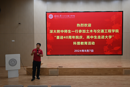 8月7日下午,深圳大学附中新一届高一拿云班65名师生前来我院参观交流,我院副院长杨磊、土木工程系系主任周海俊、学院学工办潘文龙等接待来访师生。