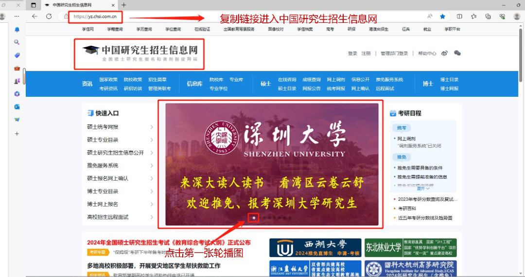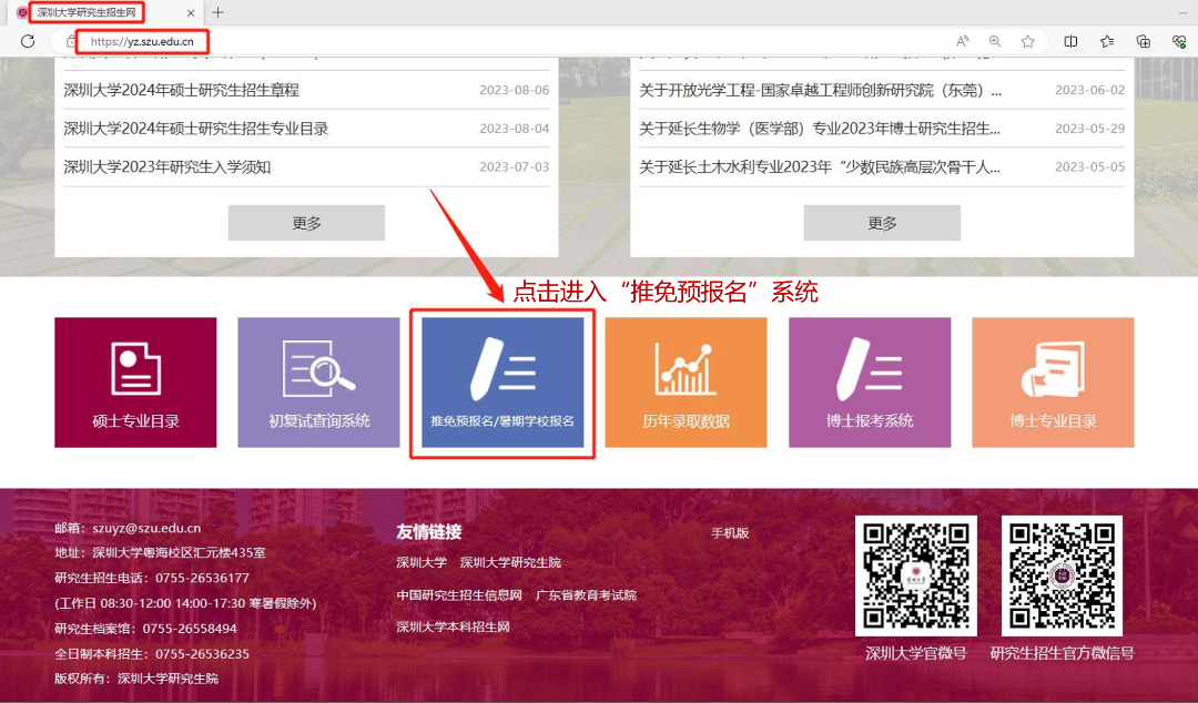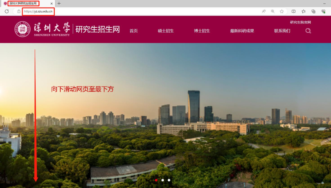 第二步:跳转进入“深圳大学研究生招生网”,同时滑动网页至最下方