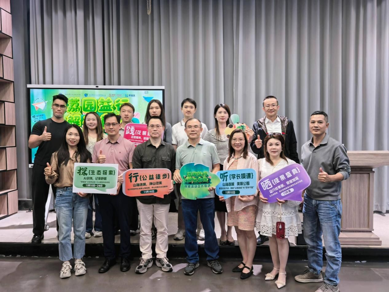 在启动仪式上,学院党委副书记陈碧霞为“听——学长授课”、“探——生态探索”、“行——公益徒步”、“践——花展服务”、“晒——成果盛典”五个环节的主理人授牌,标志着“荔园益行·解码自然”五步曲的正式启动。