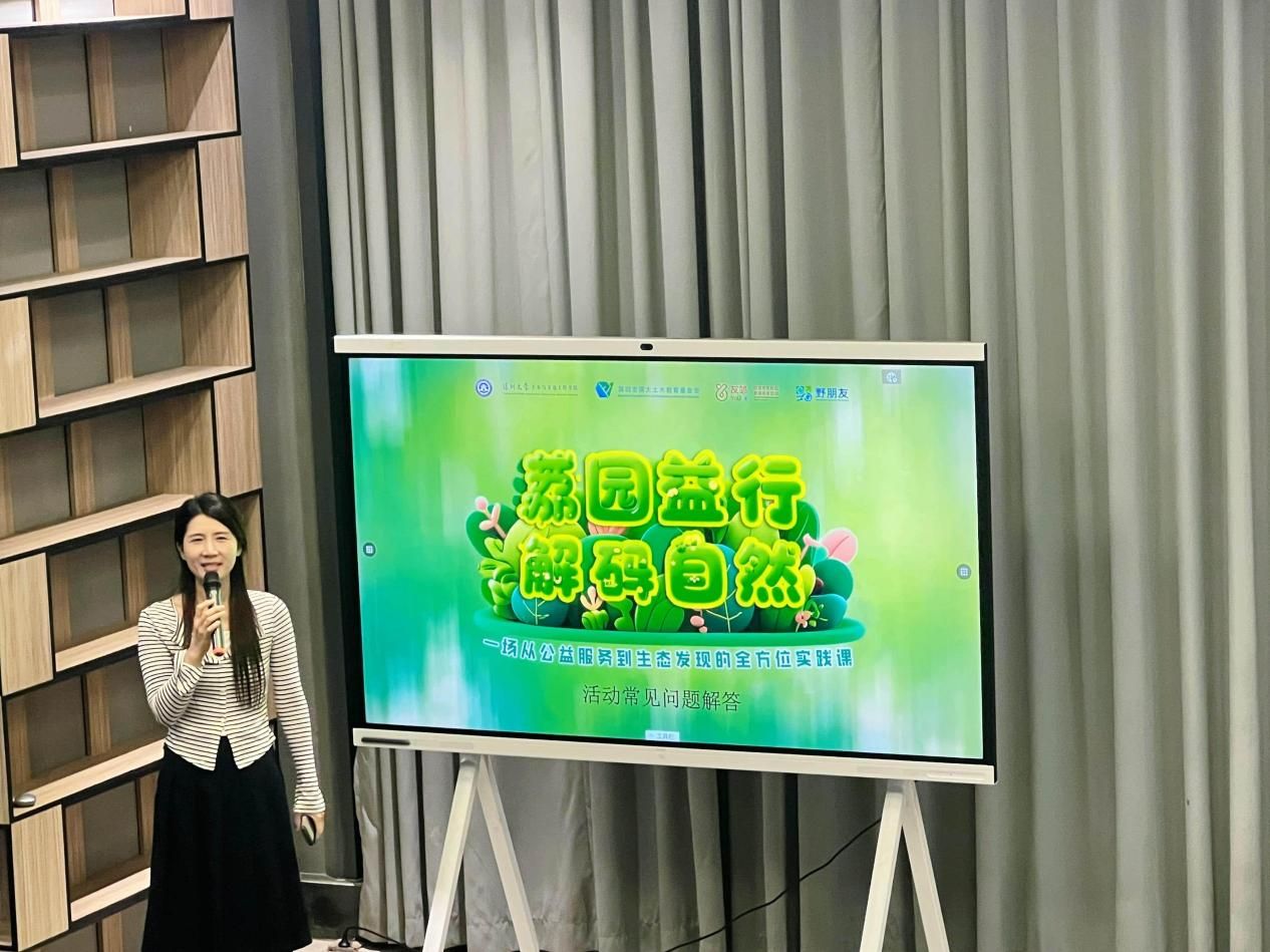 活动现场,深圳市深大土木教育基金会副秘书长罗苑玲详细讲解了后续公园探索打卡规则和奖励机制,现场解答疑问,并引导参与者扫码加入活动社群。