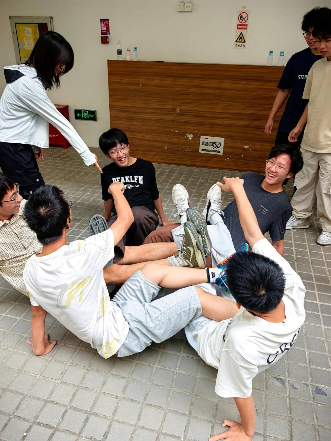 “几人几脚”游戏将本次团队拓展活动推向高潮。队员们通过背、抱、协作等创意方式合力完成任务,展现了出色的团队凝聚力与协作精神。在傍晚的“猫抓老鼠”户外拓展中,队员们穿梭于校园绿茵与建筑之间,借助电子地图规划路线,或分工围堵,或灵活隐匿,奔跑声与欢笑声交织,充满青春活力。