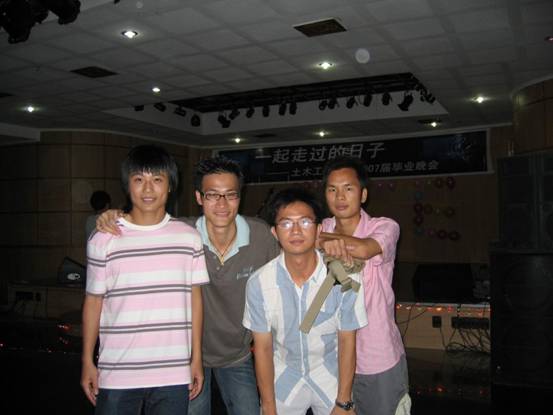 在深大读书期间,他曾做过03土木系一年的班长,和03级同学都保持着很好的感情和联系。他还记得,有一次班级组队参加足球比赛,大家为了班级的荣誉都是拼尽全力,黄老师的眉骨也在比赛过程中被撞碎,至今印象深刻。在学习上,他们班级学习氛围也很浓厚,大家都不甘落后。黄老师说:“除了我之外,我的寝室还有一位名校的博士,他也是我的老乡——刘奕欢博士,他读完本科继续在韩国首尔大学、东京大学深造,目前也是土木结构工程设计的专家。”