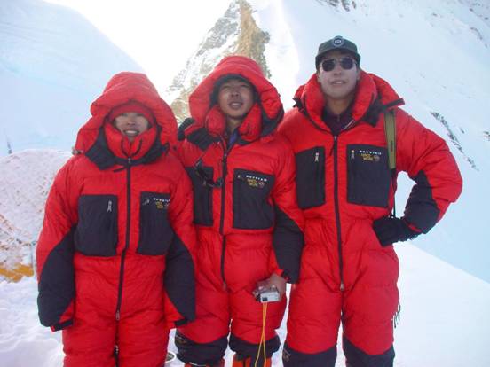 因为当时除了中国队之外,还有一支韩国队正在前行,其中有三个人走得比较快,李老师便为他们三个人让了一下路,自己再继续向上攀登。然而,一个人在第二台阶就要花费20分钟,等三名队员全部登上去之后,已经过了1个小时了。在那里,李老师深刻地体会到“塞车”的真正含义。正是前面这三个人的距离,让他与中国队队员之间差了一个多小时。等他上了第二台阶的时候,已经到了所谓的“关门”时间了,李老师最后只能服从指挥开始下撤。在下撤的那一瞬间,李伟文老师望着下面一片云海,远处只有几个山尖露了出来,那番景色至今难忘。