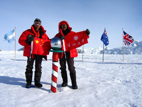 李伟文老师和我们所有同学一样,对学校和学院有着很深的感情,“你可以看到,我们去登山,包括去南极,带的是两面旗子,一面就是国旗,第二面就是深大的旗子”。