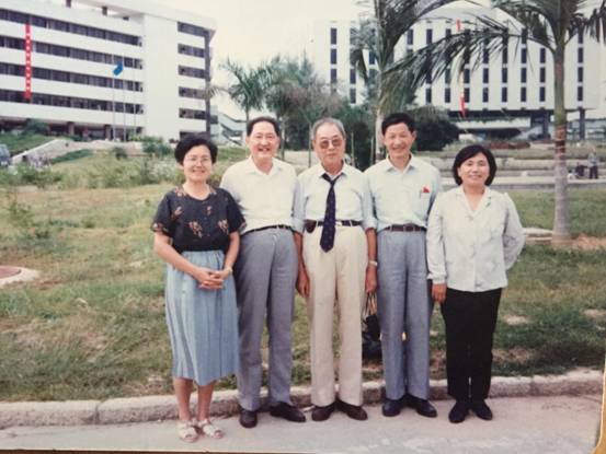 左起:张谦、王家远、李著璟(清华)、夏之熙(清华)、岳莲珍、赵教授夫人、赵文蔚(清华)