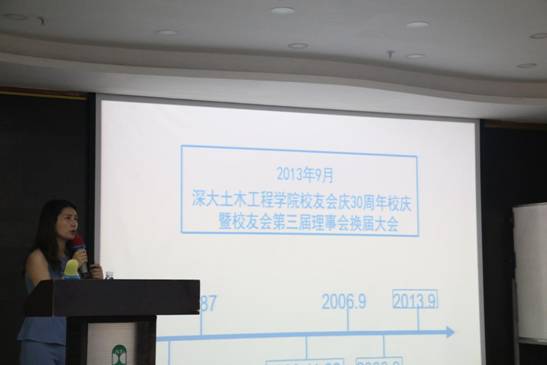 之后,学院党委副书记陈碧霞老师发言,她说,自己是深大90级外语系的毕业生,之后留校做老师,这么多年一直呆在深大,与深大共同成长,自己更愿意以朋友的身份跟大家一起交流。她还表示,一直以来,深大土木校友会的工作都做得非常出色,希望接下来9月份的校庆活动也能在各位的齐心协力下圆满完成。