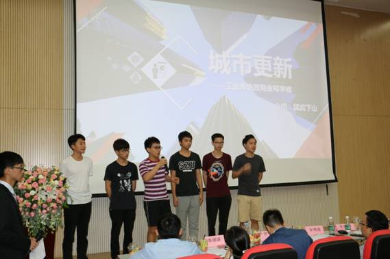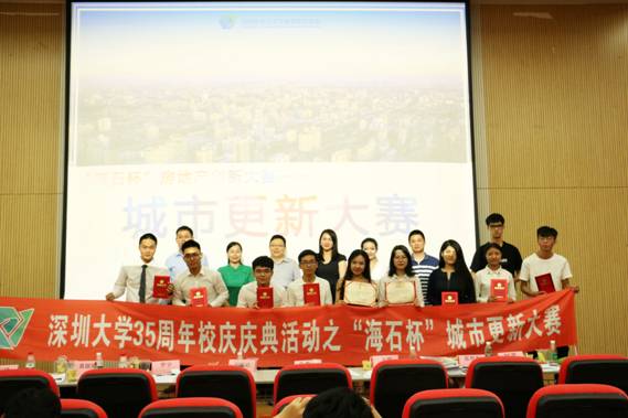 2018年5月12日,“海石杯”城市更新大赛于深圳大学土木工程学院a431报告厅举行,深圳大学基建部主任、房地产研究中心常务副主任宋博通老师、深圳大学土木工程学院工程管理系王刚老师、深圳大学土木工程学院工程管理系袁丽丽老师、深圳大学建筑与城市规划学院张彤彤老师、深圳市海石集团有限公司副总裁、海石基金管理有限公司董事长朱清石先生、合一城市更新集团执行董事兼总经理罗宇先生、合一城市更新研究所中心主任丁镇先生、深圳市城市更新开发企业协会秘书长刘芳女士作为评委出席了本次活动。
