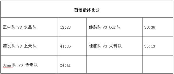 经过激烈的角逐,篮球赛首场比赛最终比分如下: