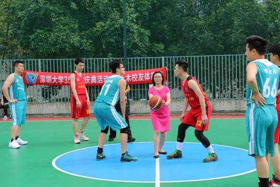 2018年5月6日下午3点,深圳大学35周年校庆活动——第二届土木工程学院校友体育节开幕式在西丽校区篮球场隆重举行,土木工程学院党委副书记陈碧霞、土木工程学院校友会秘书长丁小波、副秘书长罗苑玲以及参加篮球开幕赛的所有队员等近百人参加了此次开幕式。