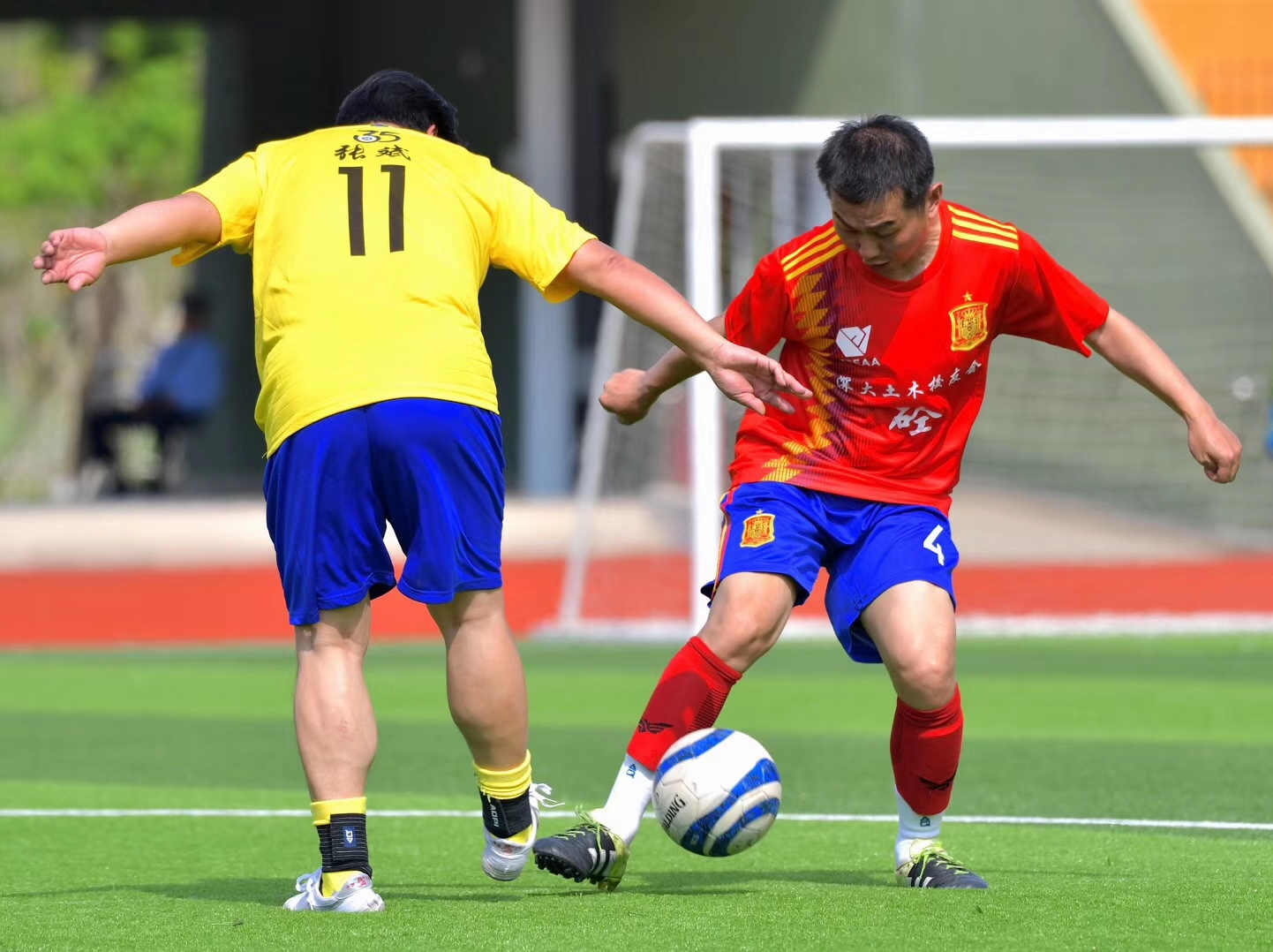 图为2018年黄景庆校友参加土木校友体育节足球赛