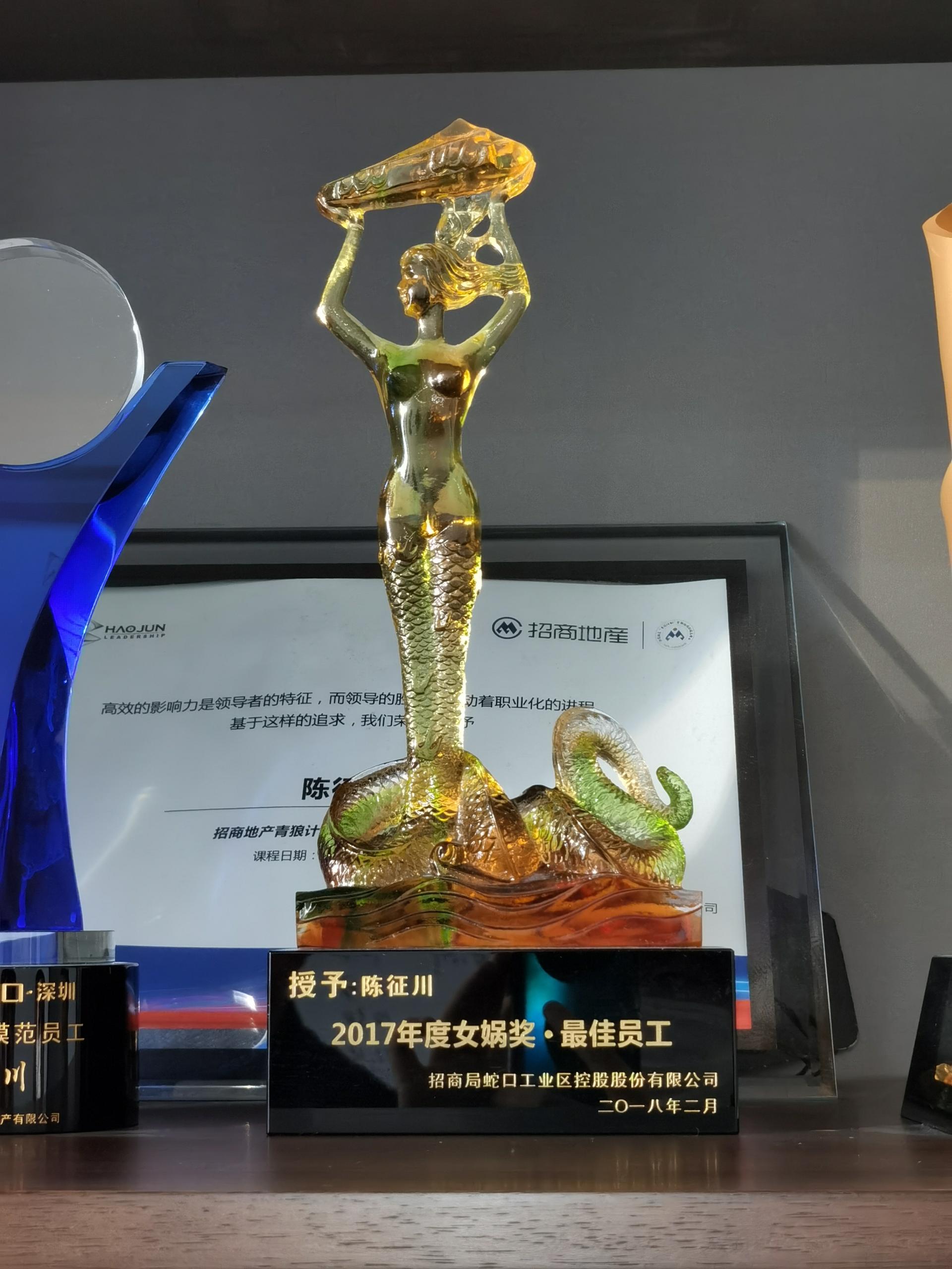 在招商蛇口,最吸引陈征川便是公司“简单、阳光、高效、关爱”的企业氛围,公司的理念和战略发展十分贴近他的个人目标,因此,他个人十分认同该公司的企业文化,希望在这种环境里面成长和发挥。这些年他凭借自己的能力和努力,获得了女娲奖(招商蛇口最高级别的奖项)及最佳导师等多项荣誉奖项。