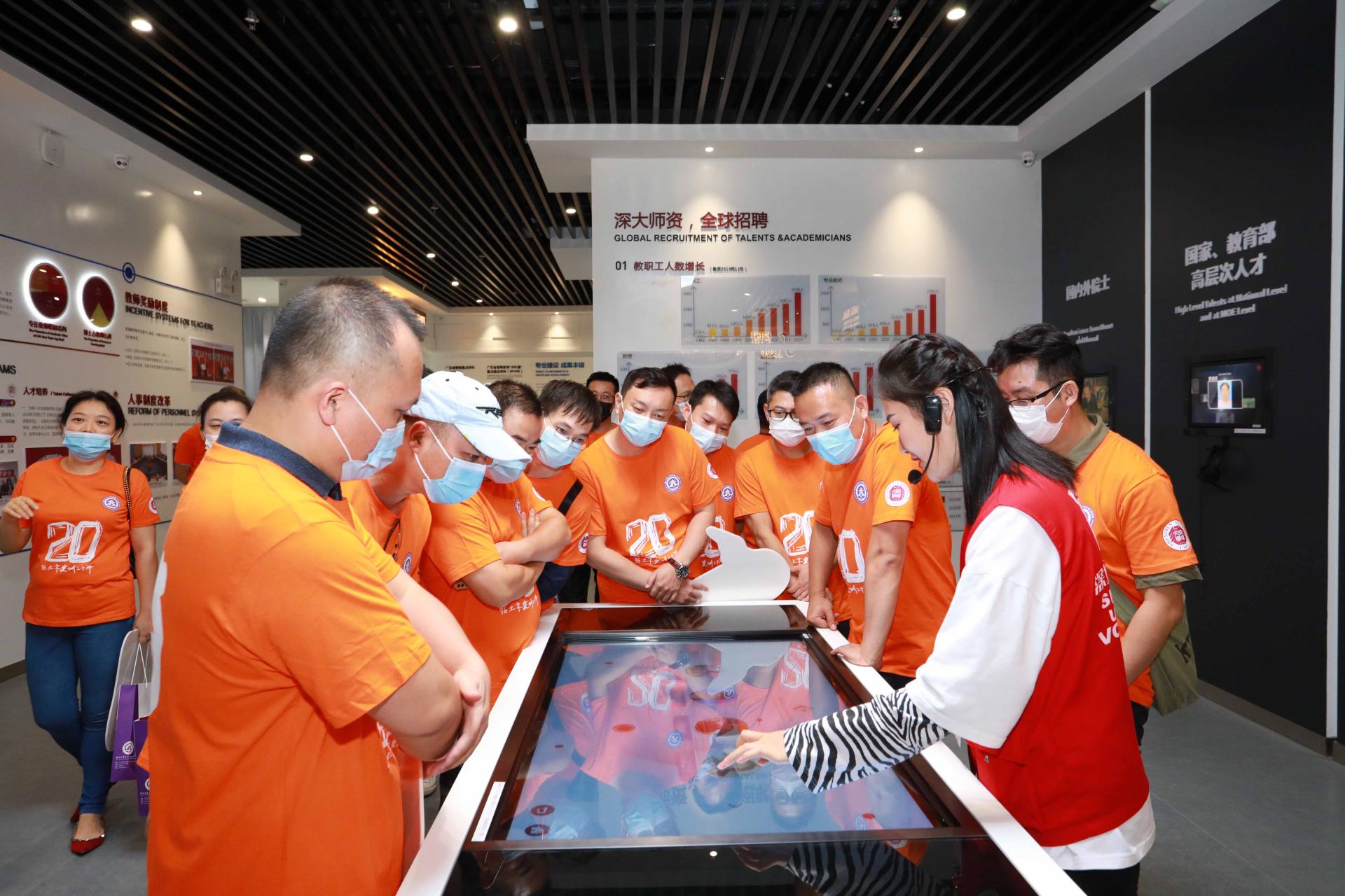 从“脚踏实地”出发,我们直奔校史馆,在馆内工作人员的指引下和解说员的讲解下,我们回顾了深大这37年来的点点滴滴。故事很长,但未来仍由我们来书写!到达校史馆参观,由义工负责人为大家讲解深大历史与荣誉和深大历史性重要事件。校友们在此了解了深圳大学校名校徽设计理念,深大学科建设的发展历程和未来前景。