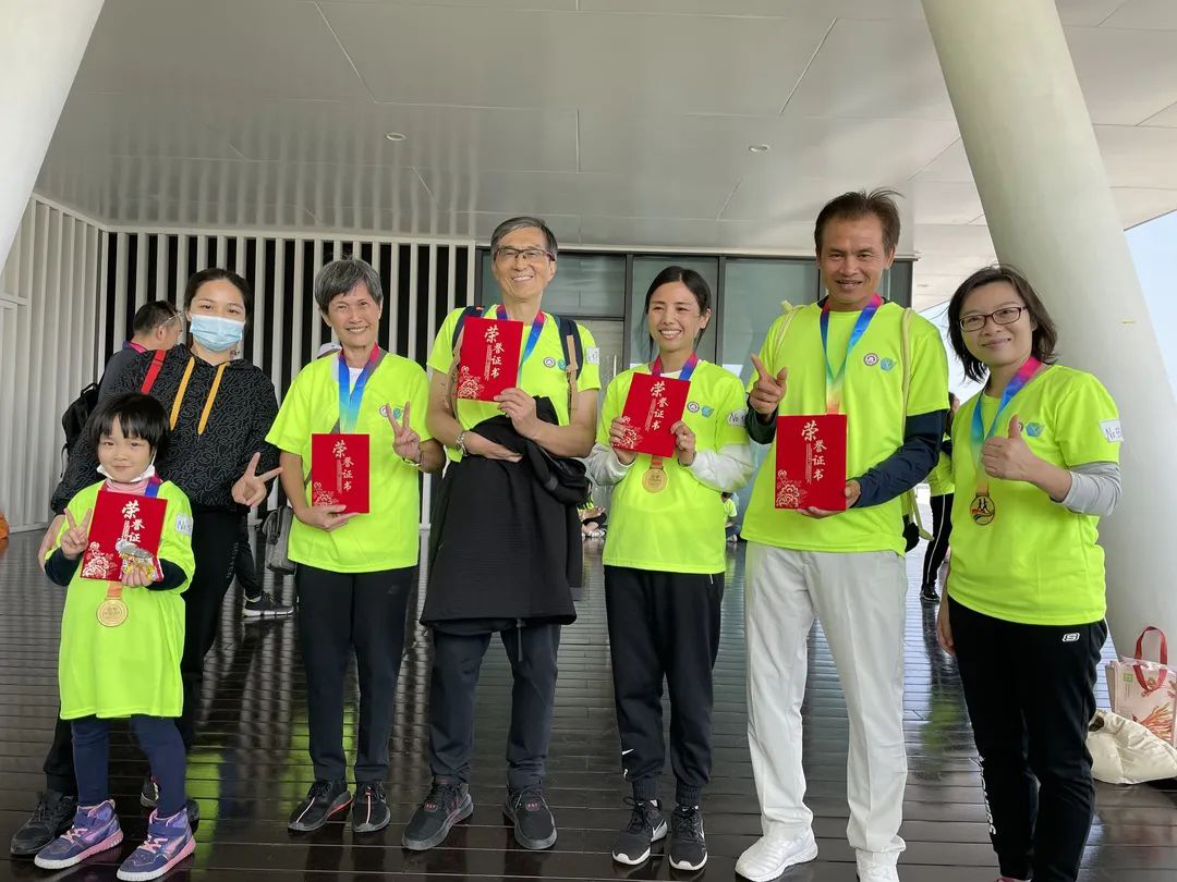 紧接着老师、校友们陆续抵达折返点。工作人员早已在此等候,组织老师、校友们进行打卡,还为他们准备了小零食补充体力。老师、校友们踏上了返程的路,返程途中,老师、校友们热情地与我们的工作人员打招呼。