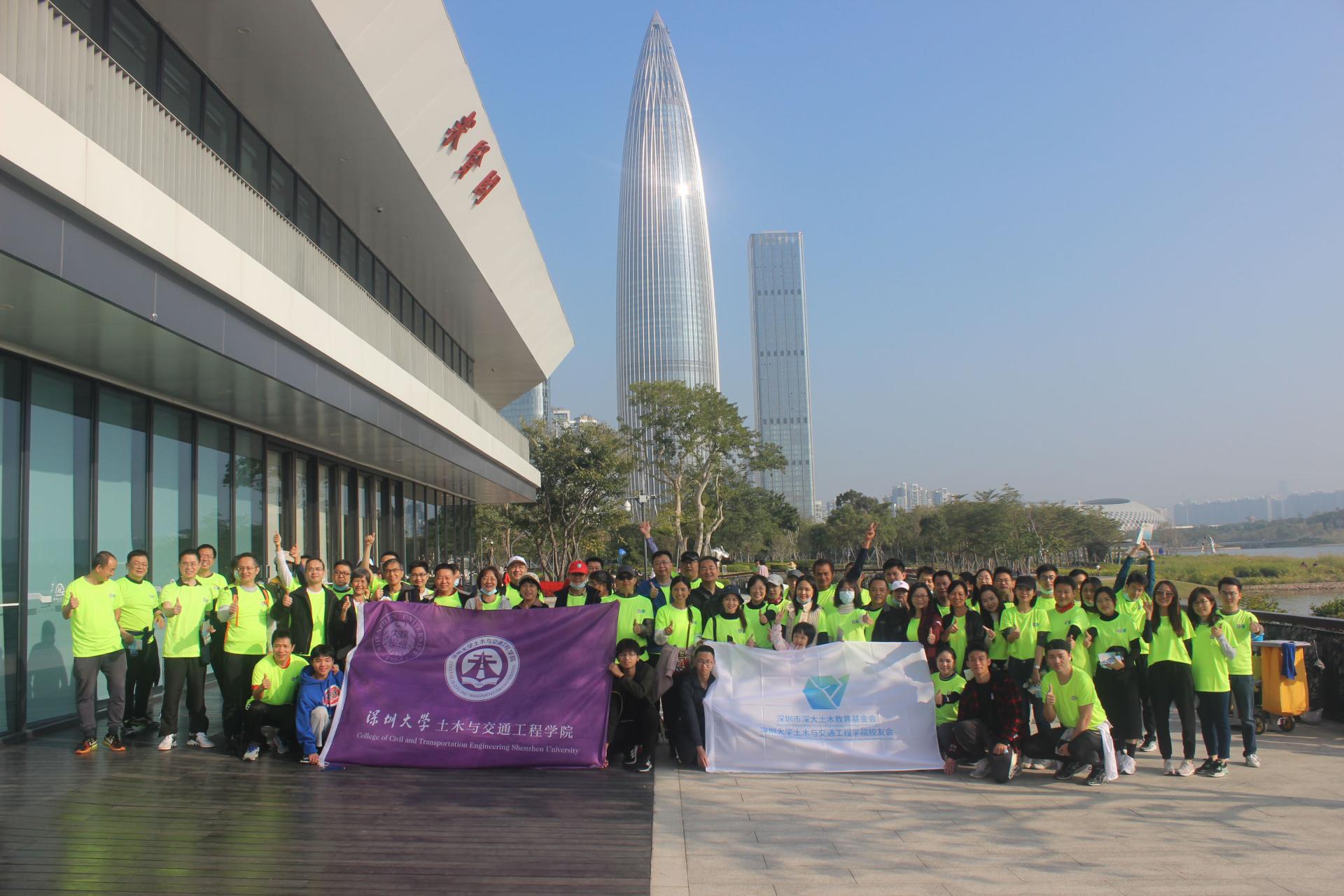 2020年12月6日,土木学院教职工和校友同聚深圳人才公园,进行线下8公里徒步活动。比赛开始之前,整装待发的老师、校友们在起点求贤阁拍大合照。