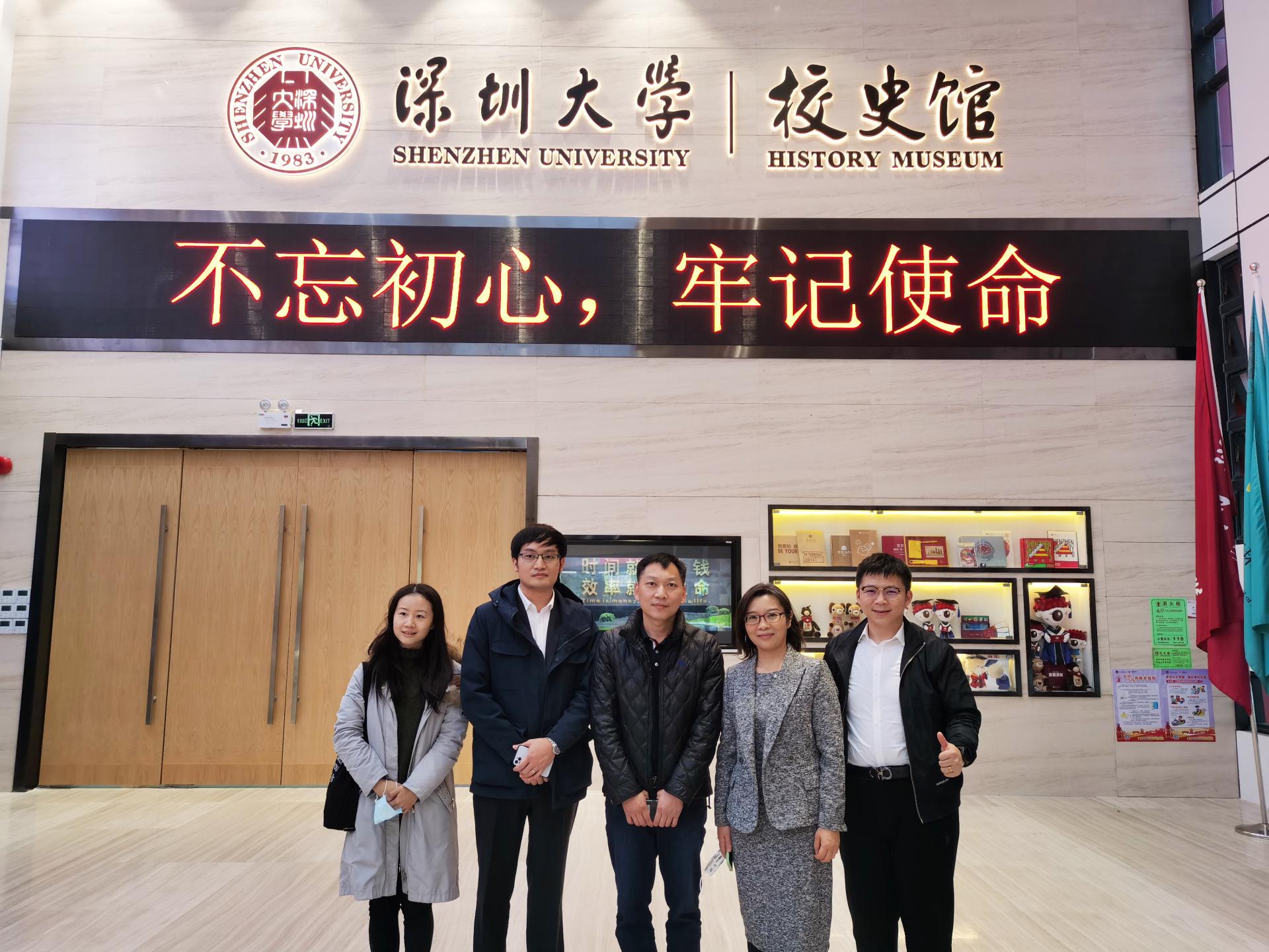 12月30日下午,我院87级校友陈伟东、96级校友林建亮、97级校友伍志坚、06级校友彭霆、07级校友陈文锴重返校园,回到深大这个梦开始的地方,学院党委书记李伟文教授、党委副书记陈碧霞老师、校友会秘书长丁小波老师、副秘书长罗苑玲接待陈伟东校友一行并陪同参观。