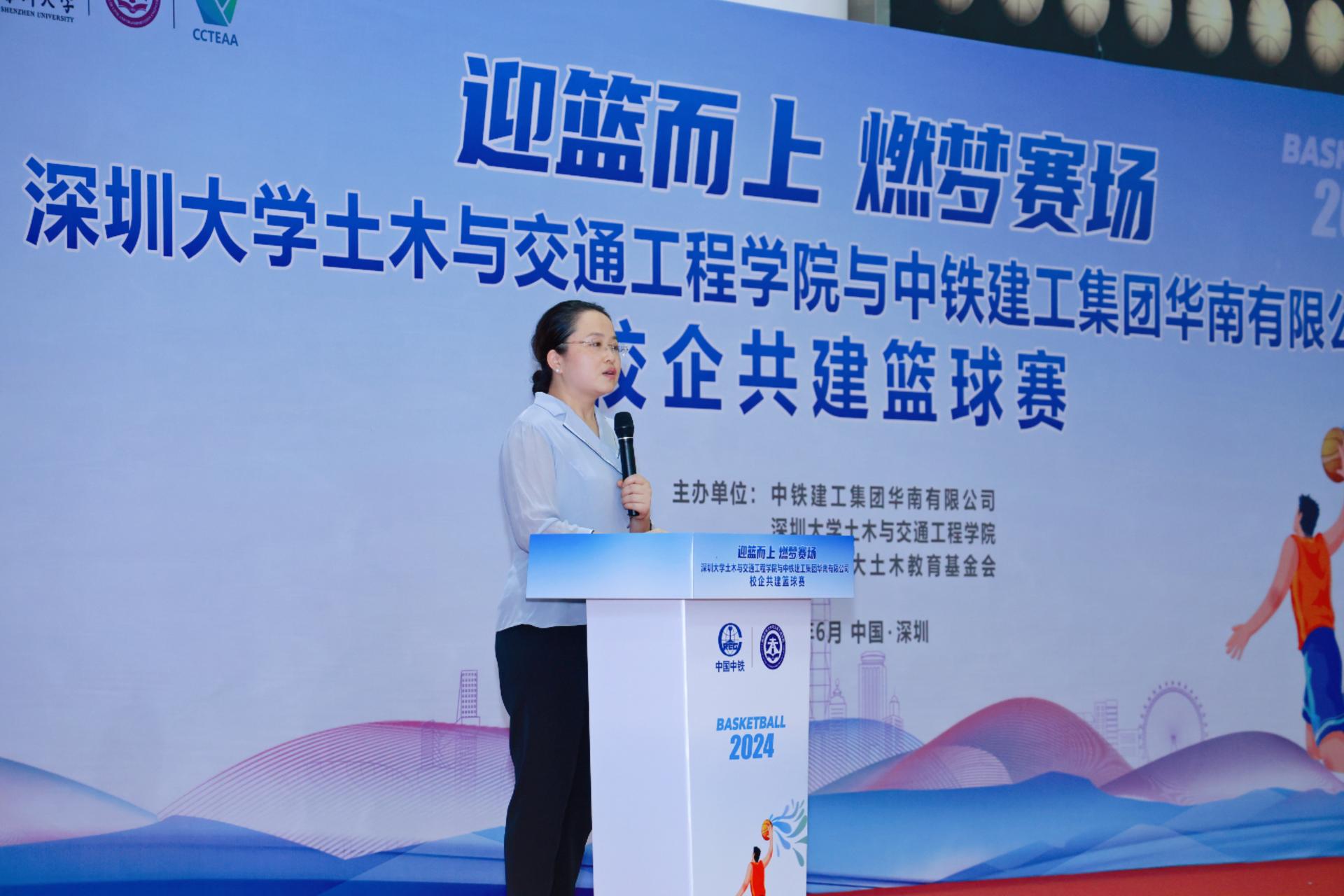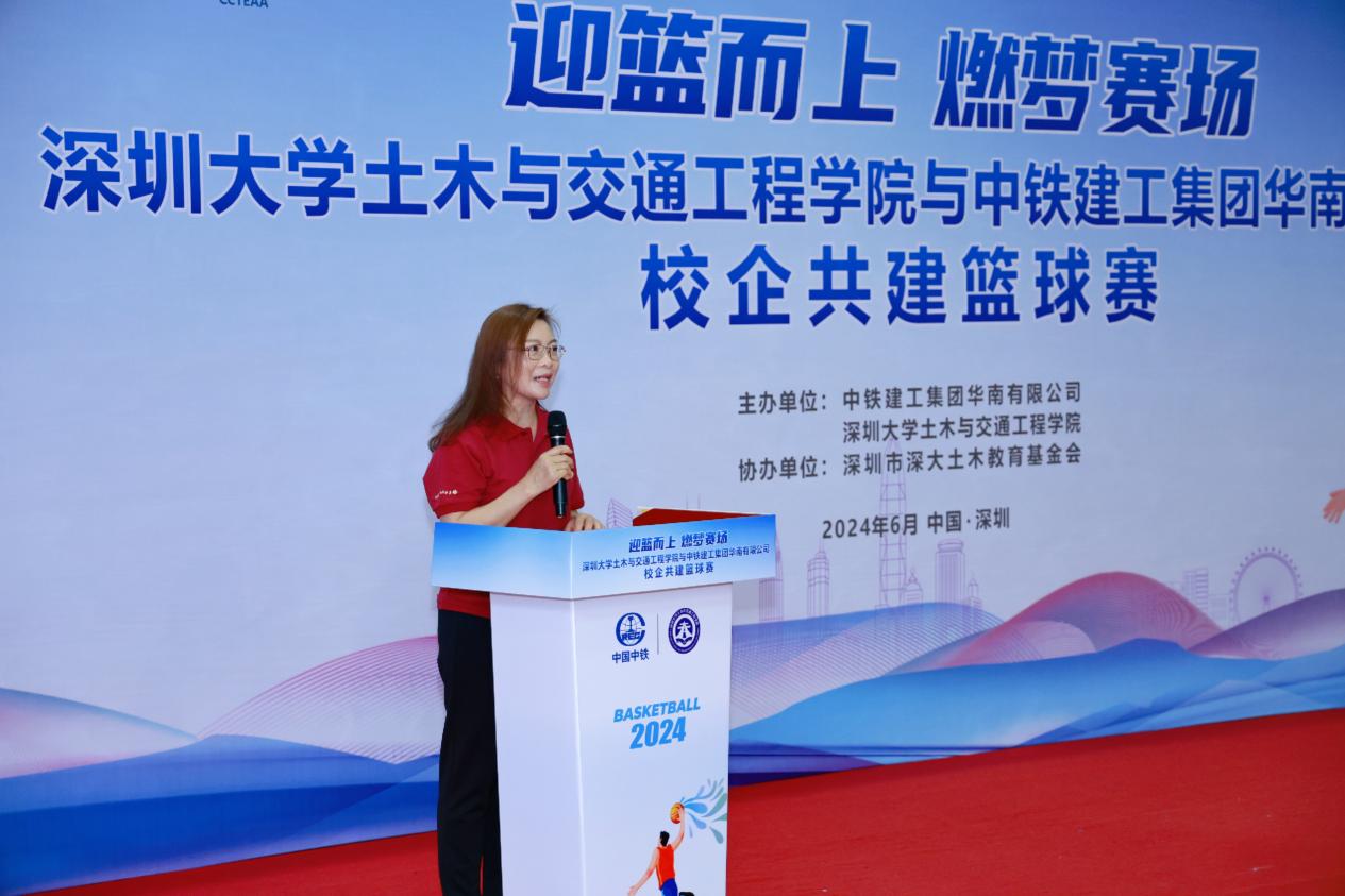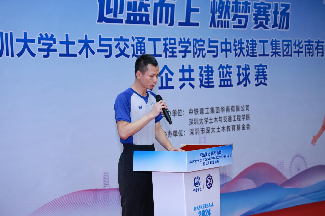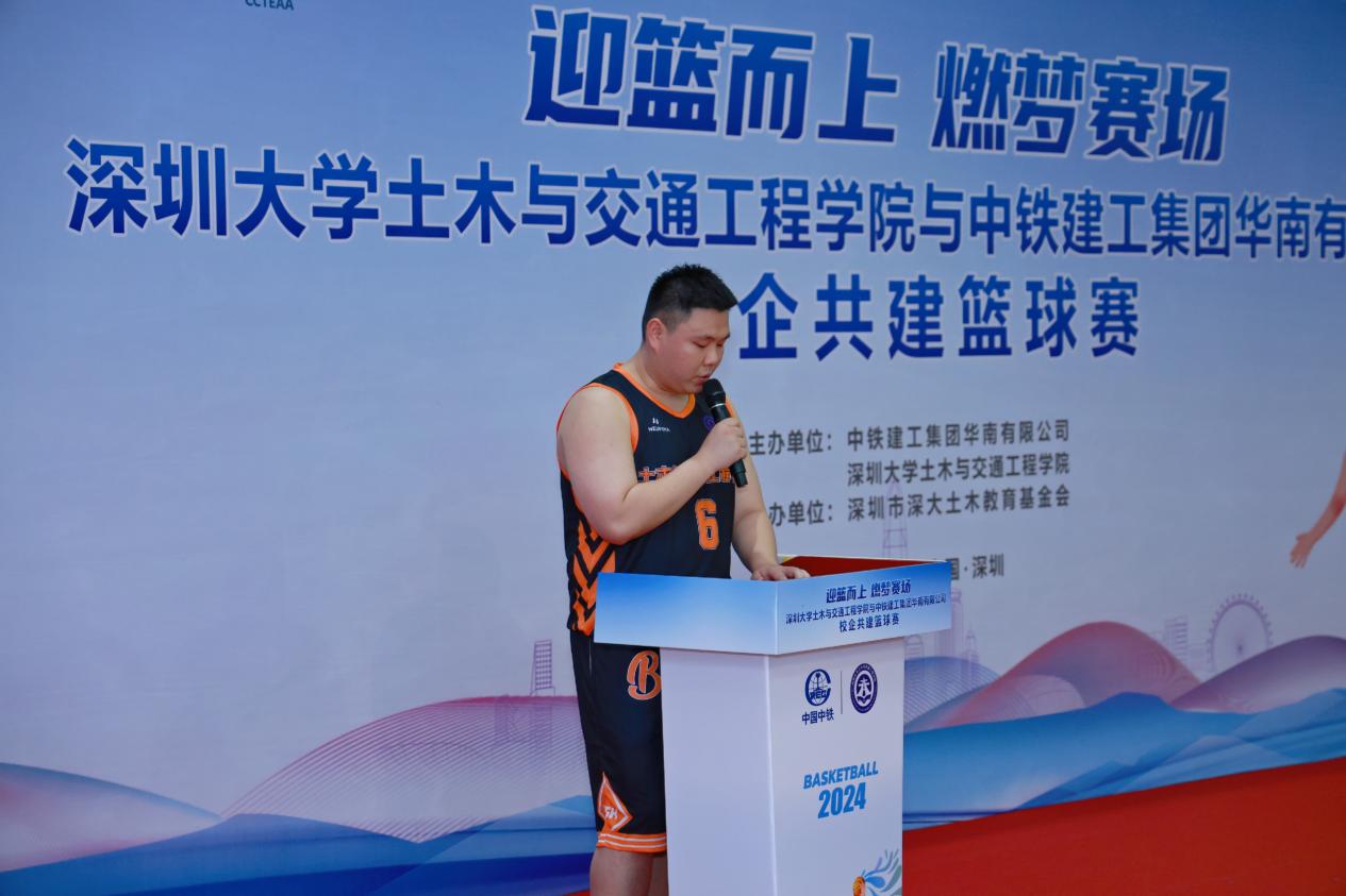 6月15日下午1时30分,一场激情四溢的篮球赛在深圳大学粤海校区南区运动广场室内篮球场即将拉开帷幕。学院党委副书记陈碧霞,中铁建工集团华南有限公司党委副书记、纪委书记、工会主席陆慧敏,中铁建工集团华南有限公司总会计师罗文彬,深圳市深大土木教育基金会秘书长丁小波等领导和嘉宾及四支双方球队共计60余人参加篮球开幕式。