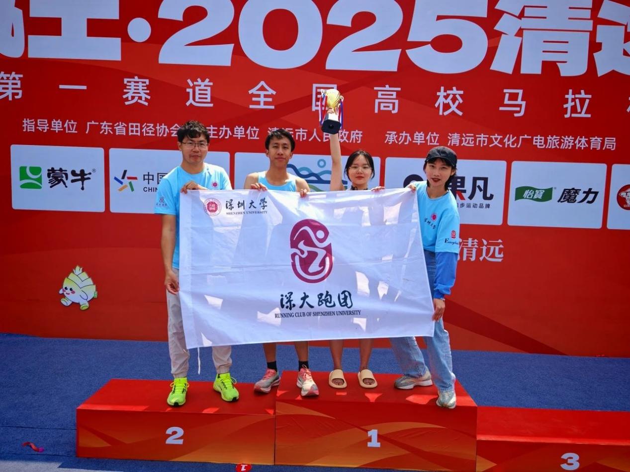 深圳大学荣获2025清远马拉松高校联赛第九名,登上领奖台!