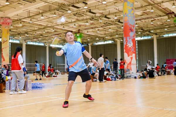 参赛选手们尽情挥拍跃动,每一次扣杀与救球都迸发着激情,羽毛球划出的弧线里满载着运动的纯粹快乐。