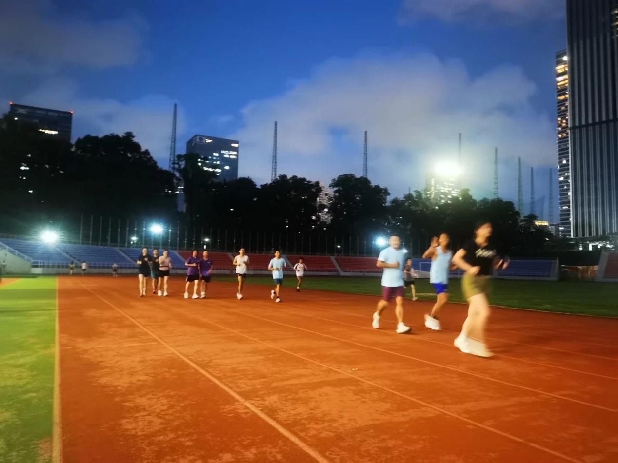 在E级教练叶俊楚的带领下,全体成员完成了小步跑、高抬腿、转胯训练等多项基础热身,针对性激活下肢与核心肌群。随后,根据个人目标分成了两组训练,分别是五公里组与三公里+间歇跑组,因需施策,精准提升。