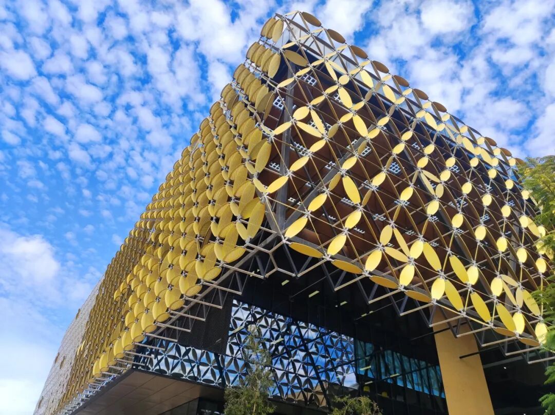 西澳大学EZONE学生中心则打破传统建筑设计的内外空间界限,设计了一个能激发互动与交流合作的环境,同时,其特殊的幕墙设计,还为其赋予了一个独特的形象符号,并呼应了校区内常见的西澳大学标志。