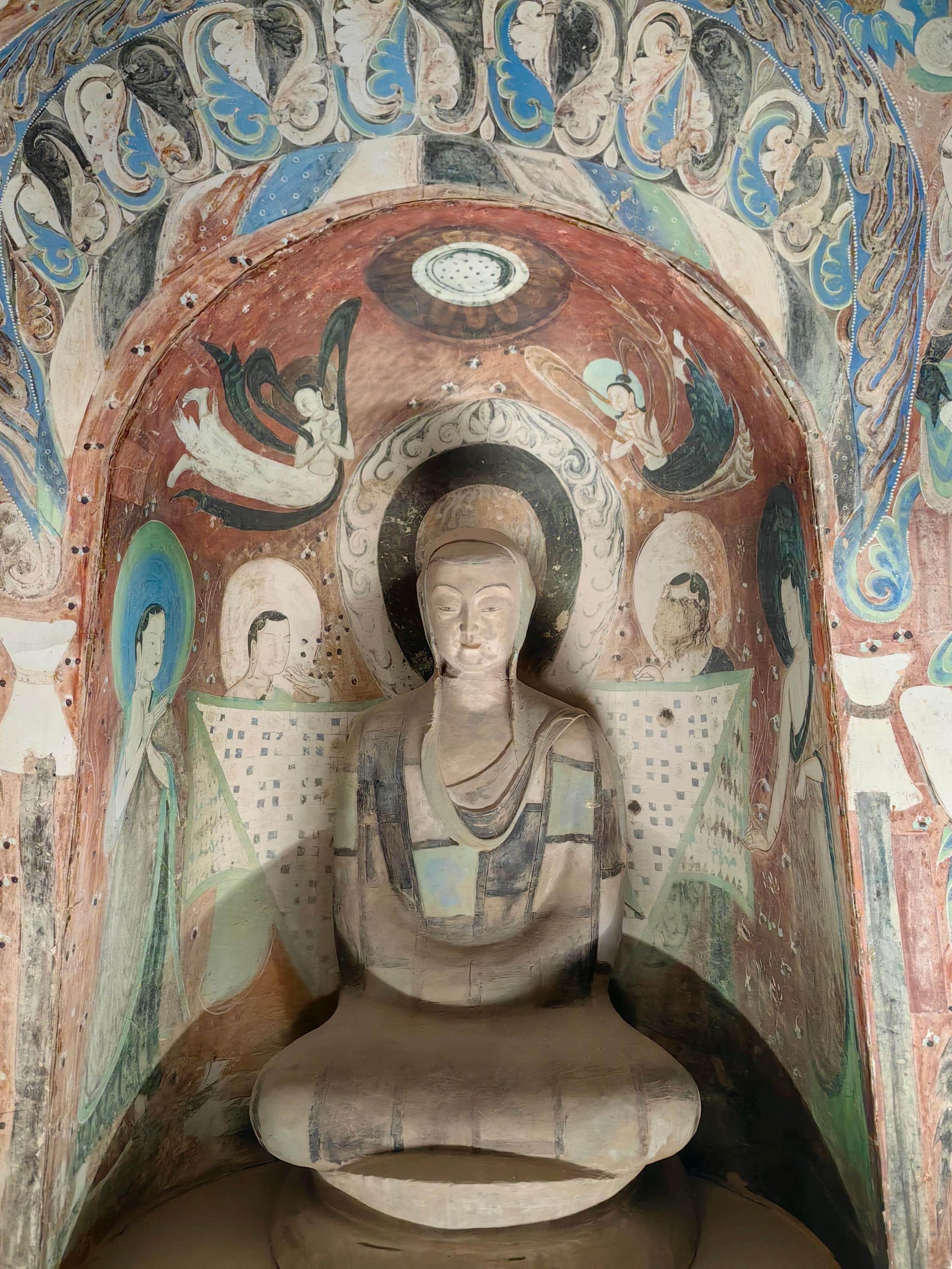 踏入博物馆的那一刻,仿佛穿越了时空的隧道,大家瞬间沉浸在敦煌艺术的瑰丽世界中。这场展览宛如一部生动的历史长卷,以205余件/套珍贵展品为笔墨,通过“丝路明珠”“佛国圣境”“人间万象”“石室宝藏”“考古探秘”“众心一念”六个精彩篇章,巧妙地将实物陈列与多媒体展示相结合,全方位、多角度地展现了敦煌文化的深邃内涵与不朽魅力。