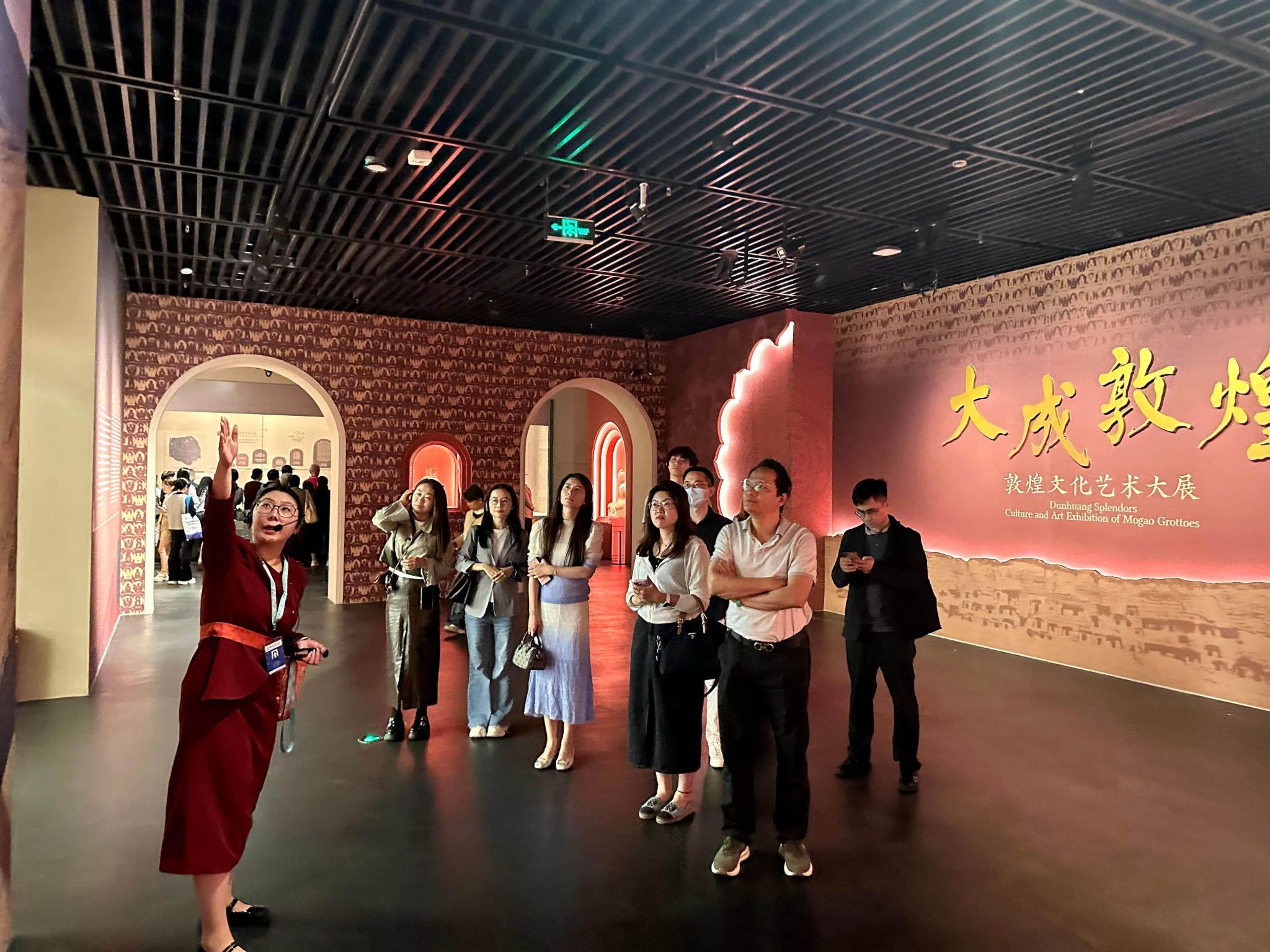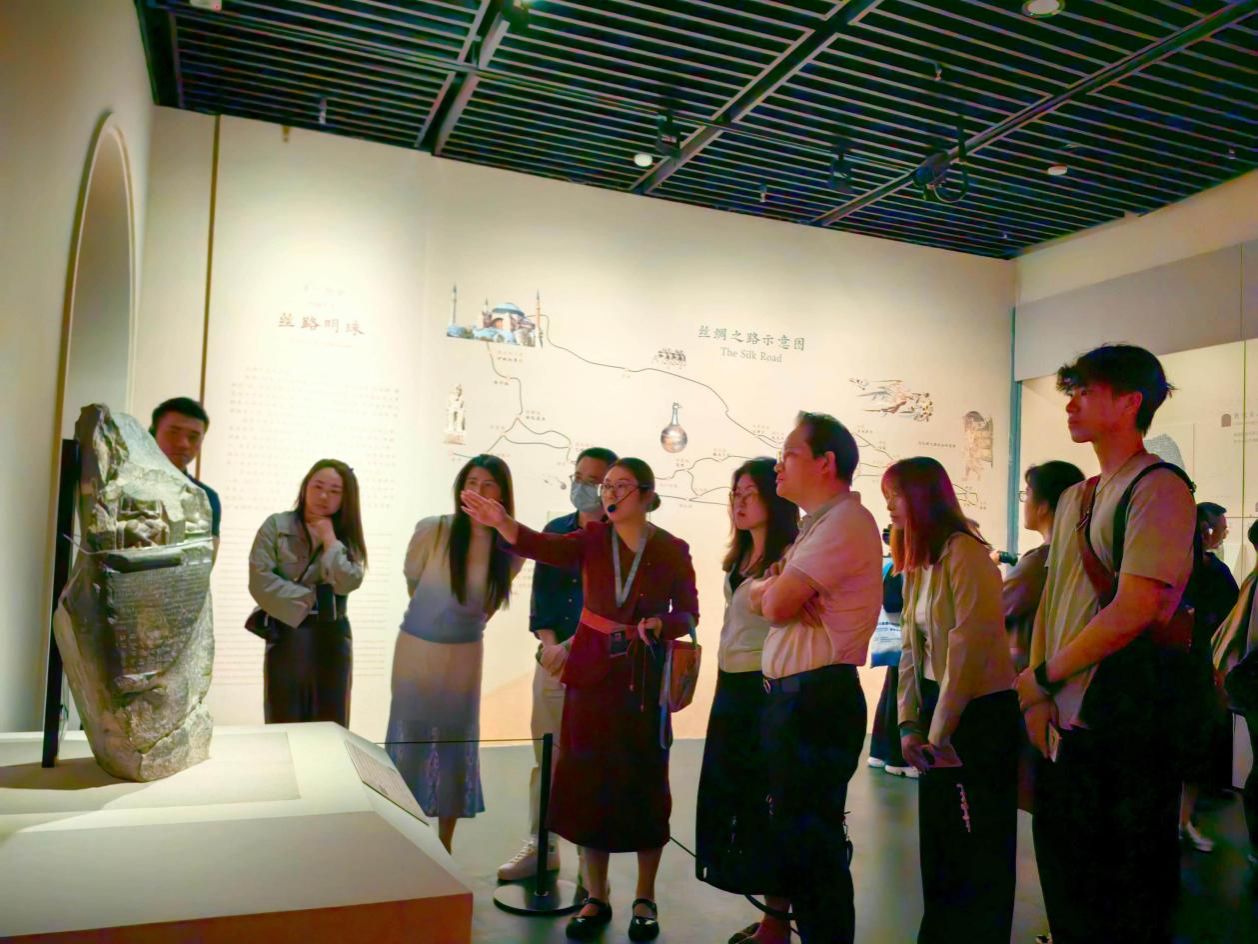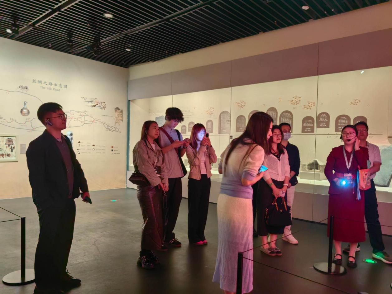 展馆内,精美的敦煌壁画临摹品、复原彩塑、经卷文献等展品错落有致地陈列着,静静地诉说着过去的故事。这些作品不仅是艺术的结晶,更是东西方文明交流互鉴的生动见证。在聆听讲解的过程中,同志们仿佛置身于那个繁华的丝绸之路时代,被中华文明的博大精深深深震撼。大家沉浸在这场跨越千年的文明对话中,深刻体会到了文化交流的魅力和力量。