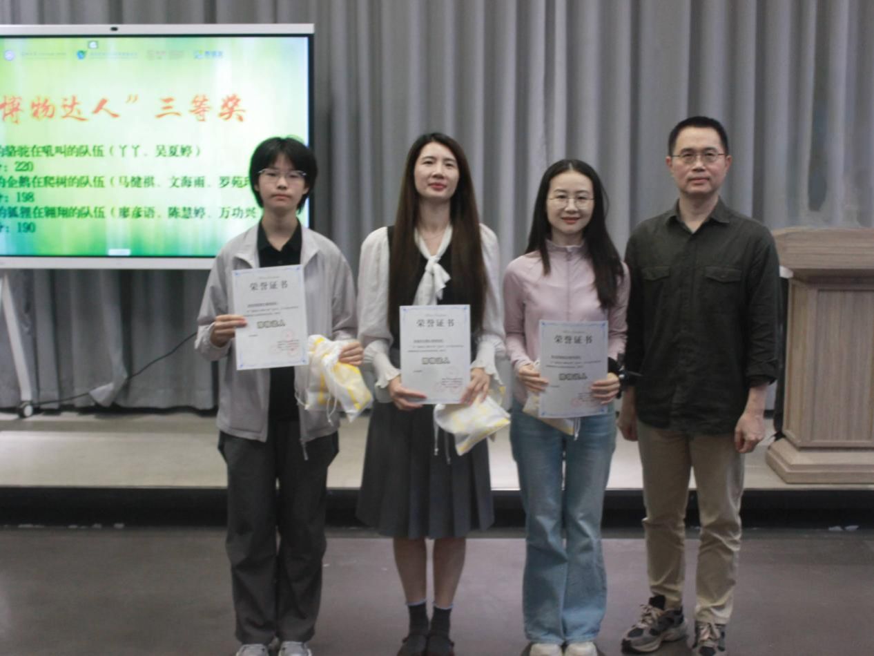 团队奖项的角逐同样精彩。“博物达人”奖(三等奖)由三支队伍获得,学院校友会秘书长、深圳市深大土木教育基金会秘书长丁小波为他们颁发荣誉证书及奖品。