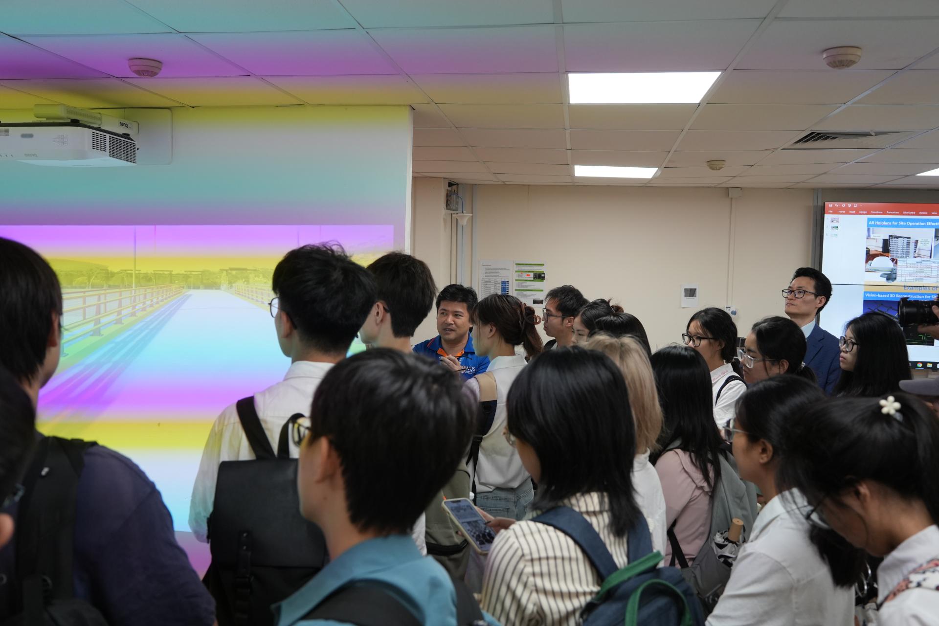 最后,在工程师Seow Soon Leong的带领下,访学团参观了土木与环境工程系的数字化实验室,探索了新加坡国立大学在土木和交通工程领域应用的最新数字化技术。特别是人工虚拟现实、3D扫描的创新应用,当我们带上所配备的眼镜时,就可以获得虚拟现实的实际场景的体验,为工程师在工程设计、工程建造前和后期现场监测提供了全新的视角和解决方案。